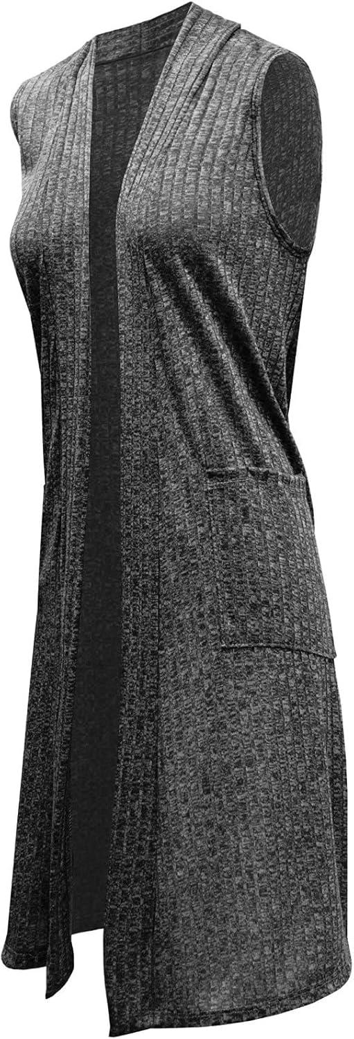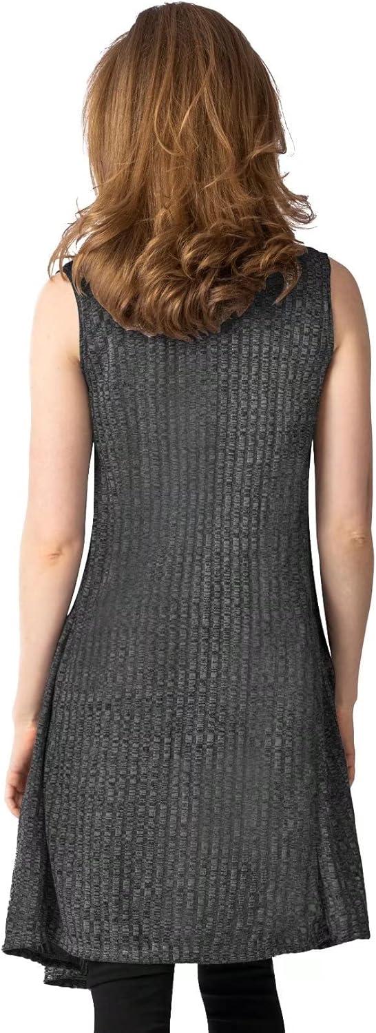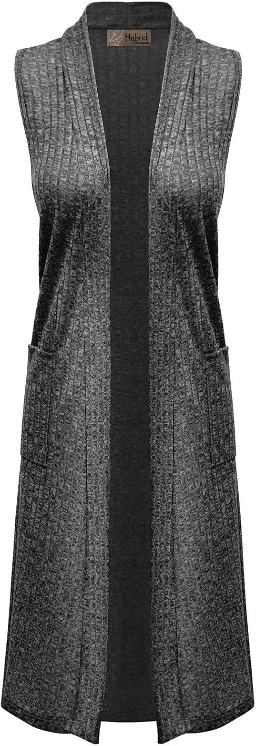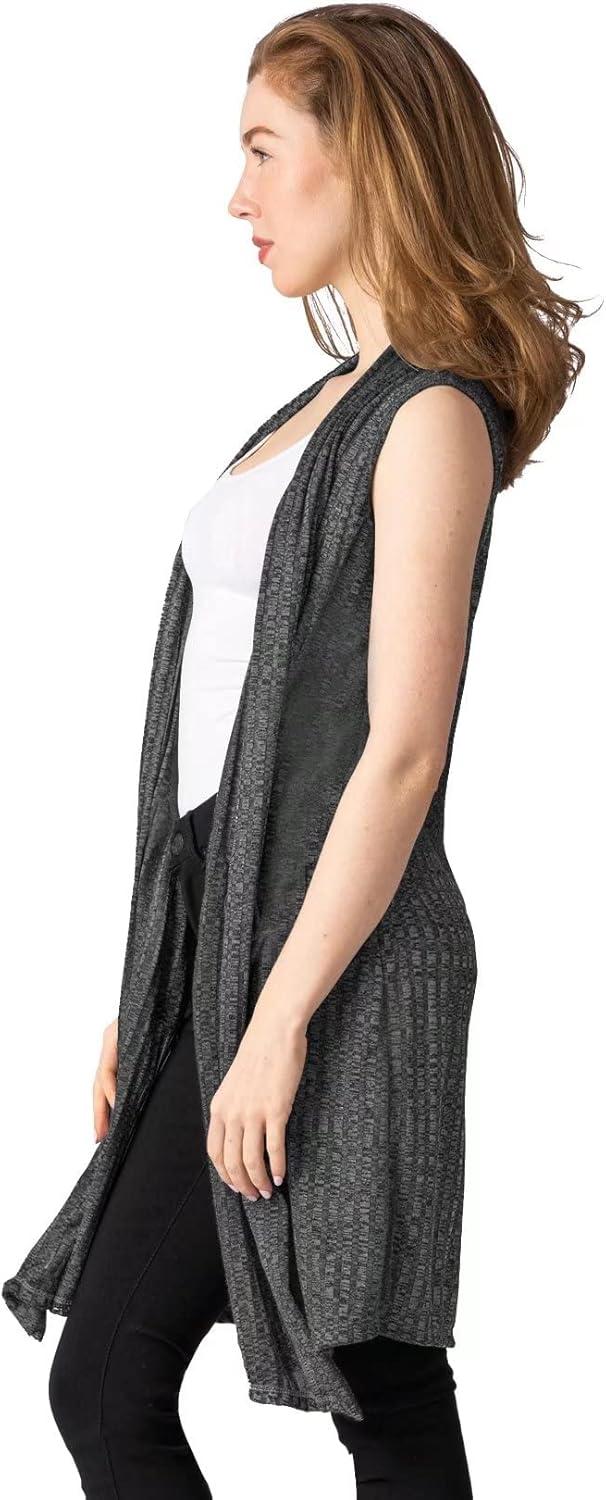 Hybrid & Company Womens Casual Sleeveless Open Front Drape Cardigan(Black)