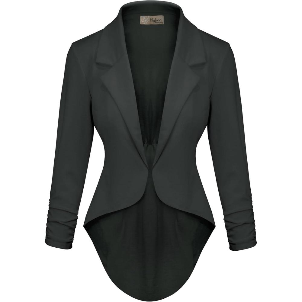 imageHybrid ampamp Company Womens Casual Work High Low Blazer Jacket  JK455901073tgunmetal