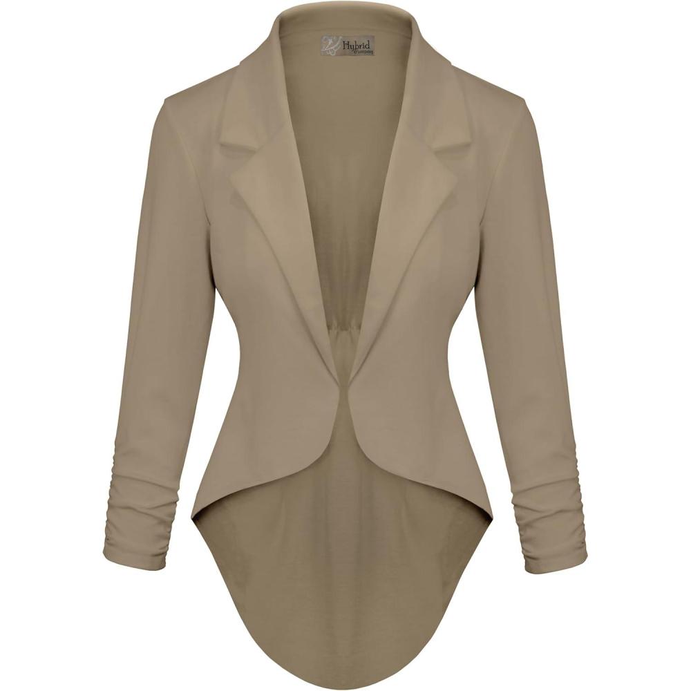 Hybrid & Company Womens Casual Work High Low Blazer Jacket – JK45590(1073t-khaki)