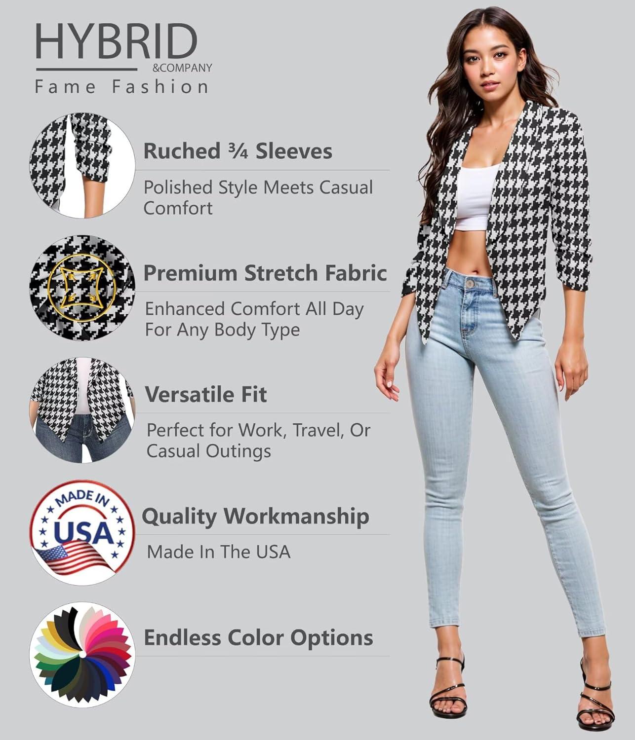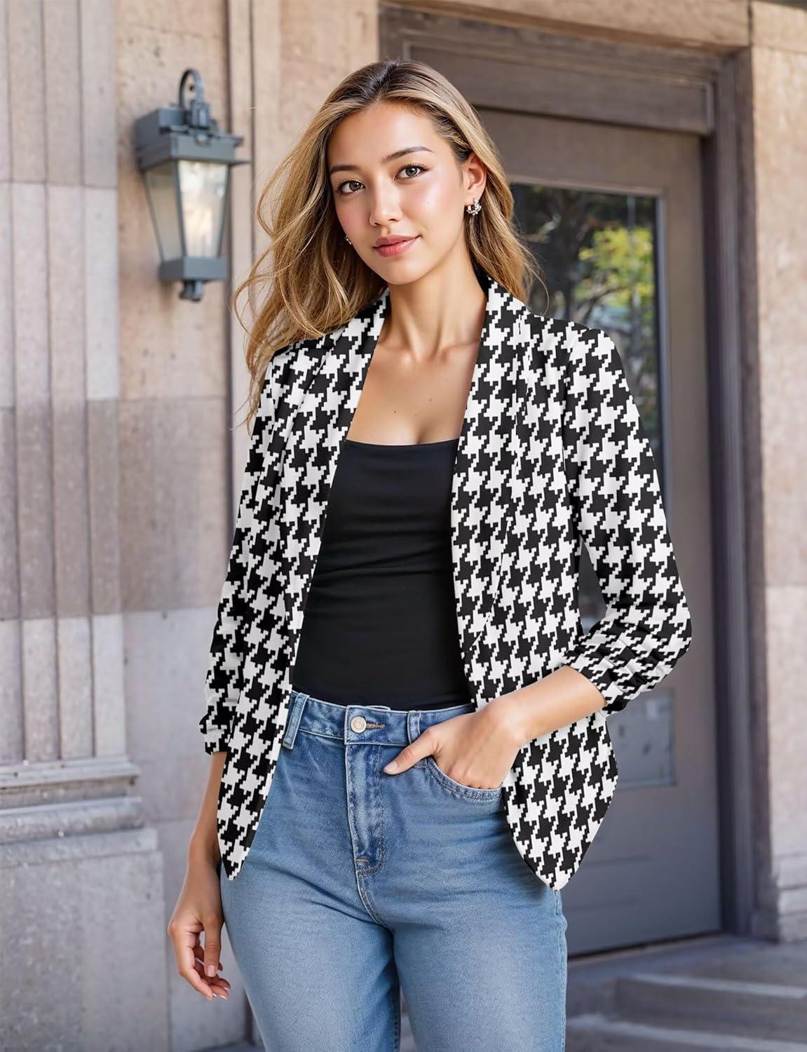 Versatile casual and office Open-Front blazer jacket featuring Ruched Sleeve, suitable for work or everyday. Designed to be wear even in hotter months in spring and summer, as well as year round.