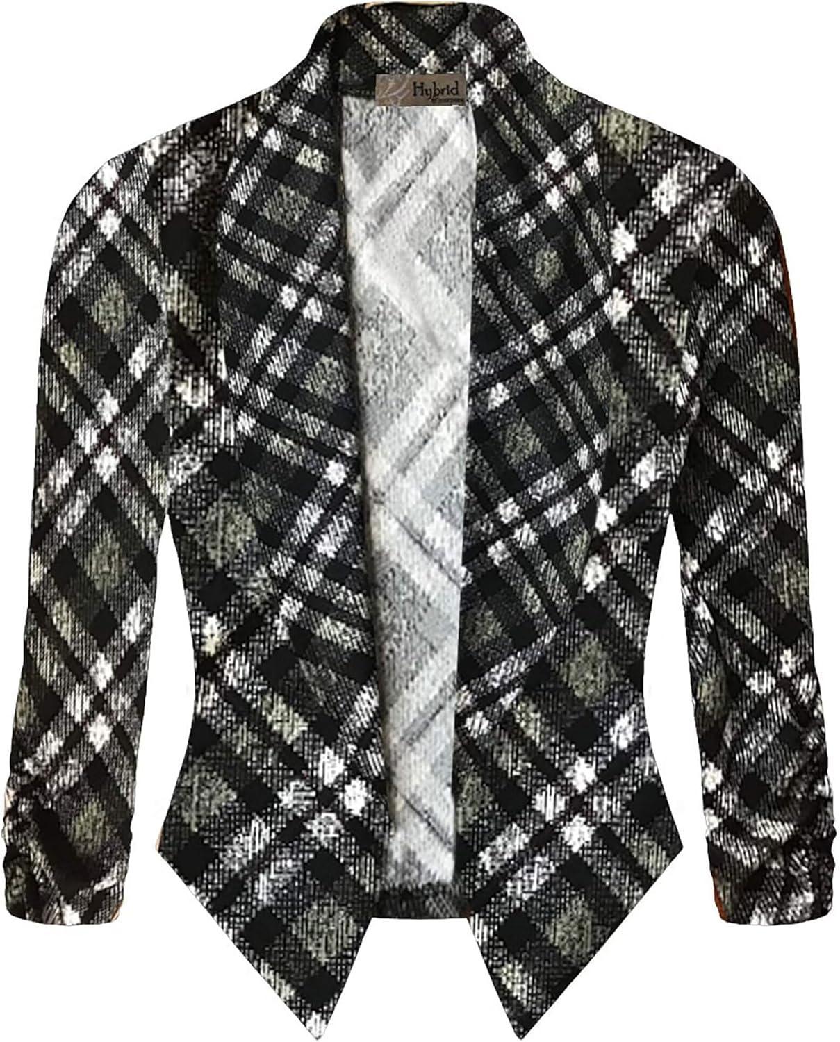 Hybrid & Company Women’s Casual Work Office Blazer Jacket Open Front Shawl with 3/4 Scrunch Sleeves(11252-blkivo)