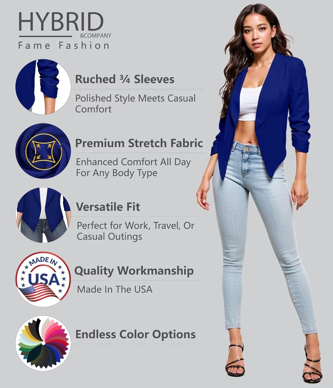 Be the first to review “Hybrid & Company Women’s Casual Work Office Blazer Jacket Open Front Shawl with 3/4 Scrunch Sleeves(Cobaltblue)”