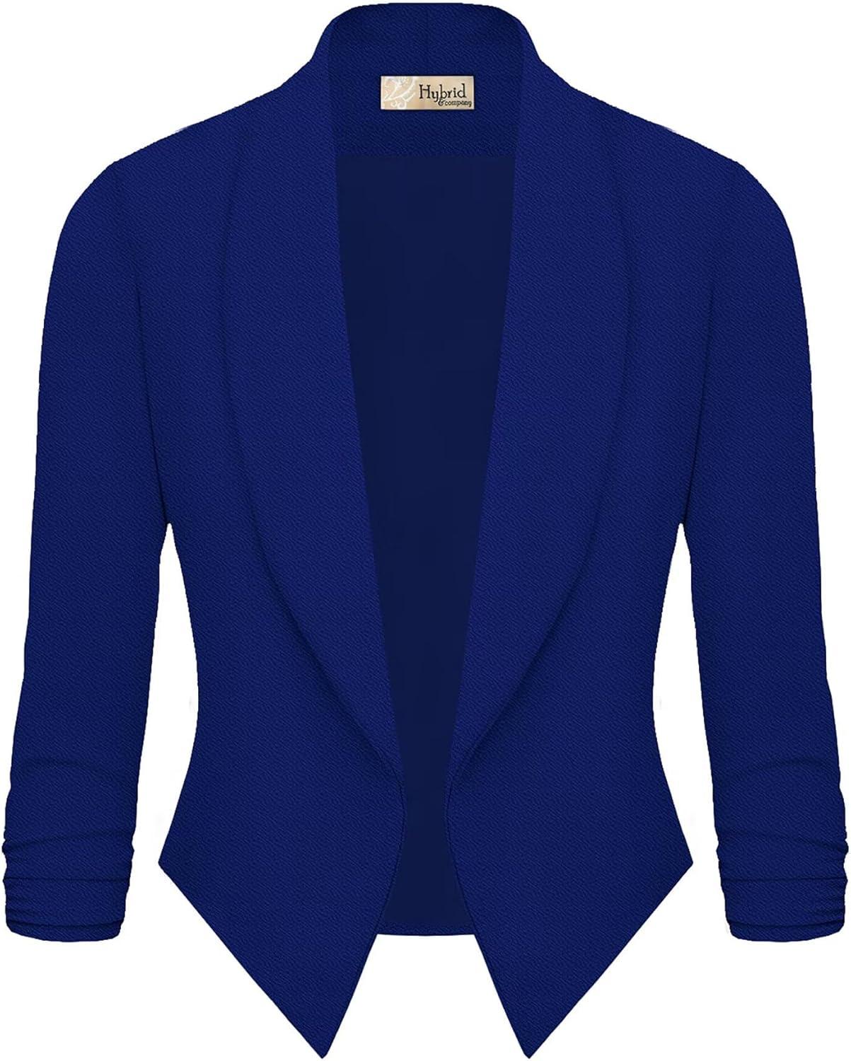 Hybrid & Company Women’s Casual Work Office Blazer Jacket Open Front Shawl with 3/4 Scrunch Sleeves(Cobaltblue)