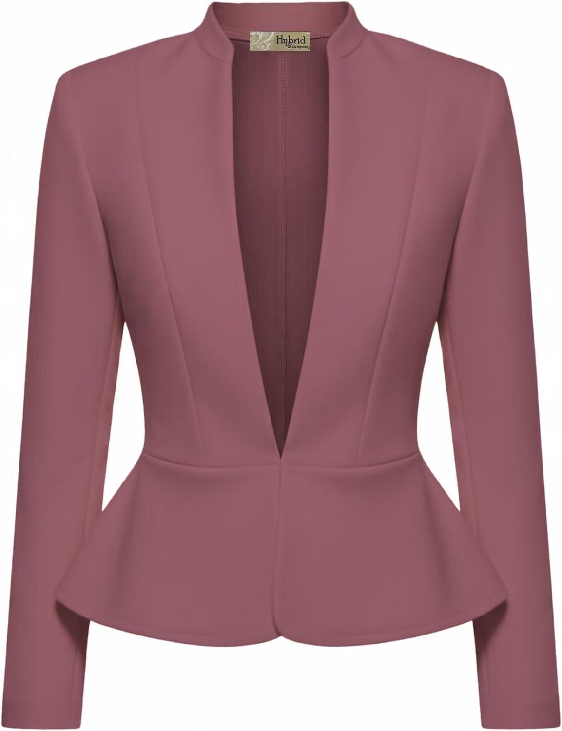 Hybrid & Company Women’s Casual Work Office Elegant Open Front Premium Nylon Blazer Jacket(Jk1135-dark Rose)