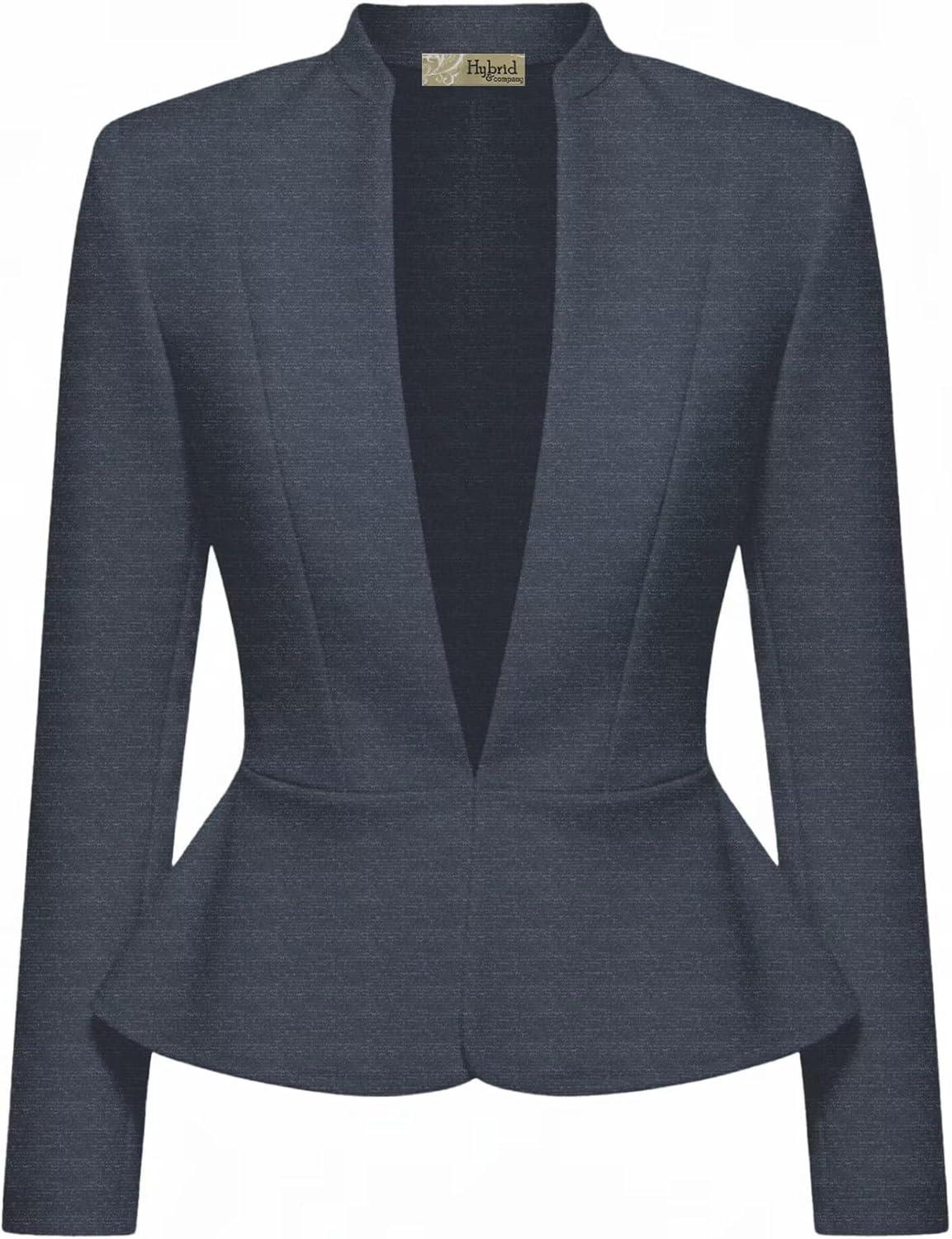 Hybrid & Company Women’s Casual Work Office Elegant Open Front Premium Nylon Blazer Jacket(Jk1135-heathernav)