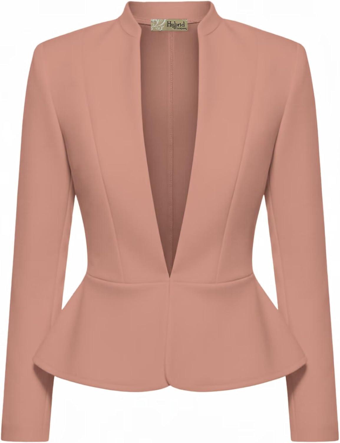Hybrid & Company Women’s Casual Work Office Elegant Open Front Premium Nylon Blazer Jacket(Jk1135-mauve)