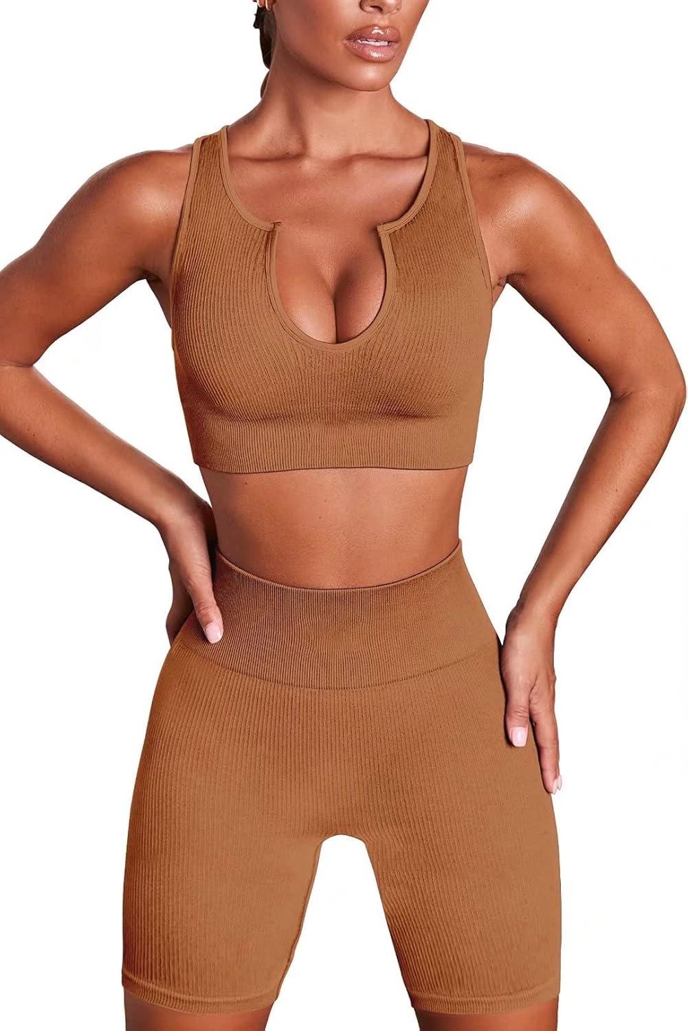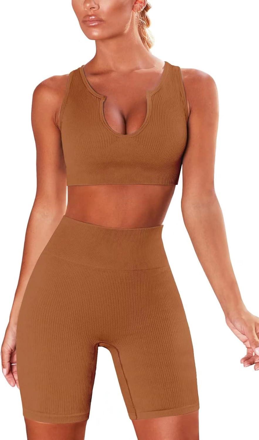 Hybrid & Company Women’s High Waisted Yoga Active Tight Running Biker Gym Shorts & Full Length Leggings(Shorts-coffee)