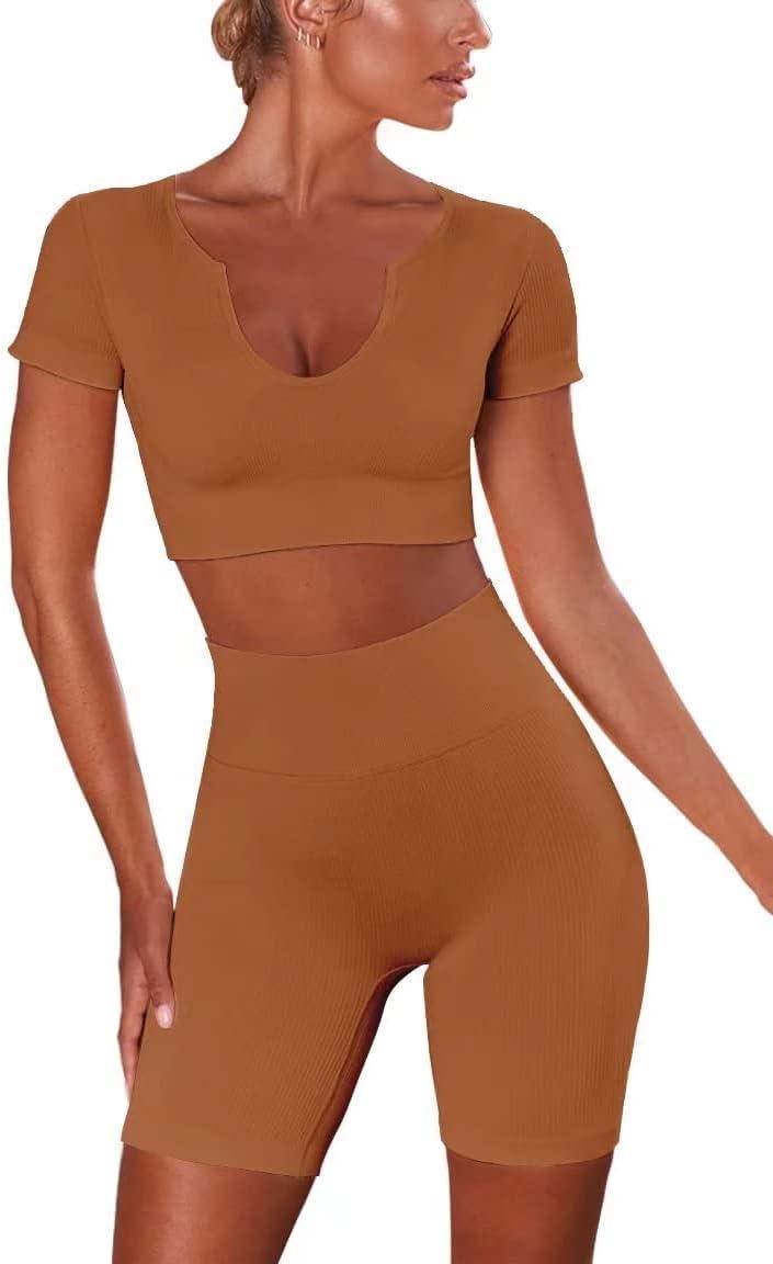 Hybrid & Company Women's High Waisted Yoga Active Tight Running Biker Gym Shorts & Full Length Leggings(Shorts-coffee)