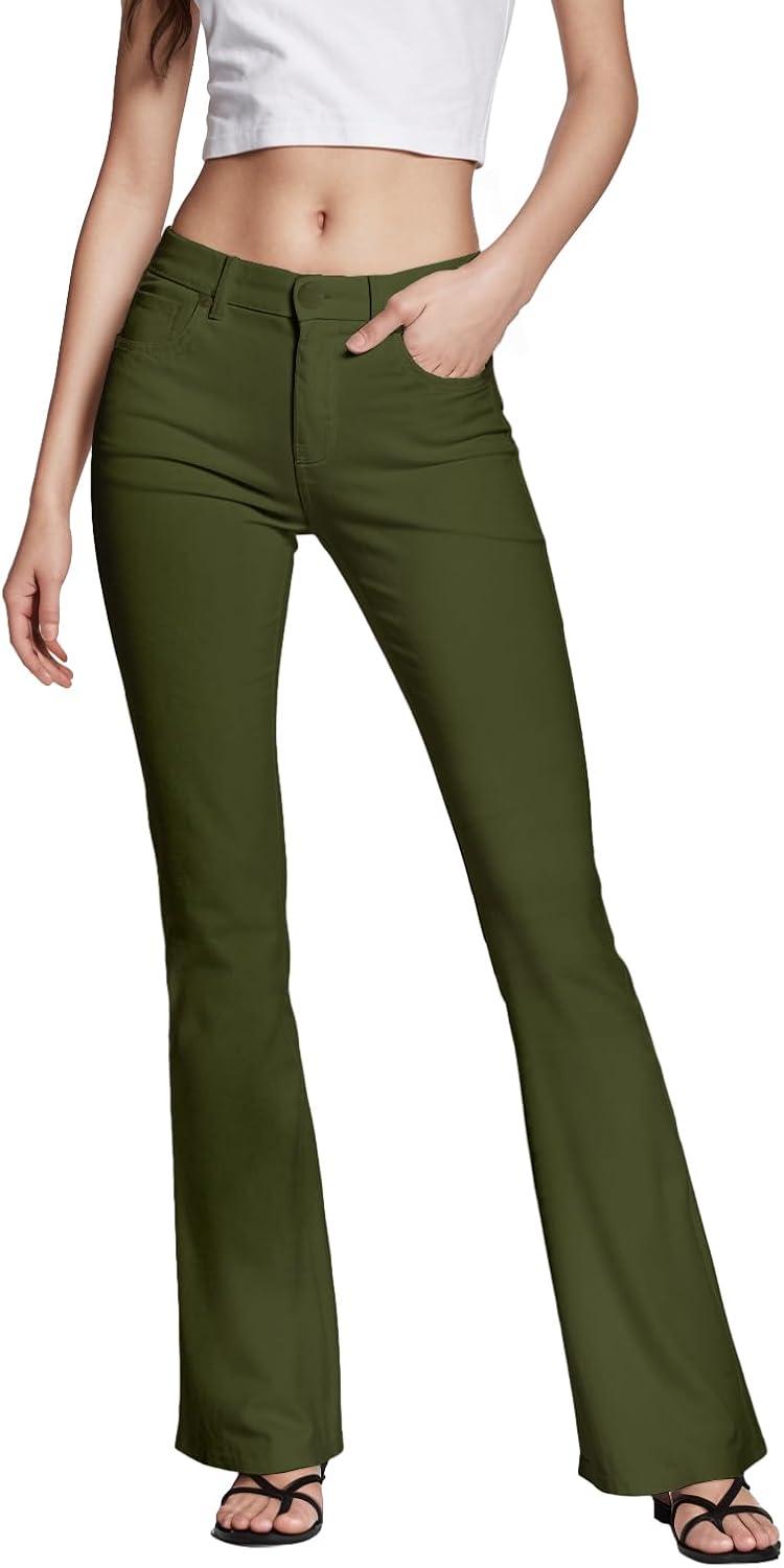 Hybrid & Company Womens Hyper Ultra Stretch Comfy Boot Cut Leg Flare Work Casual Pants(Olive)