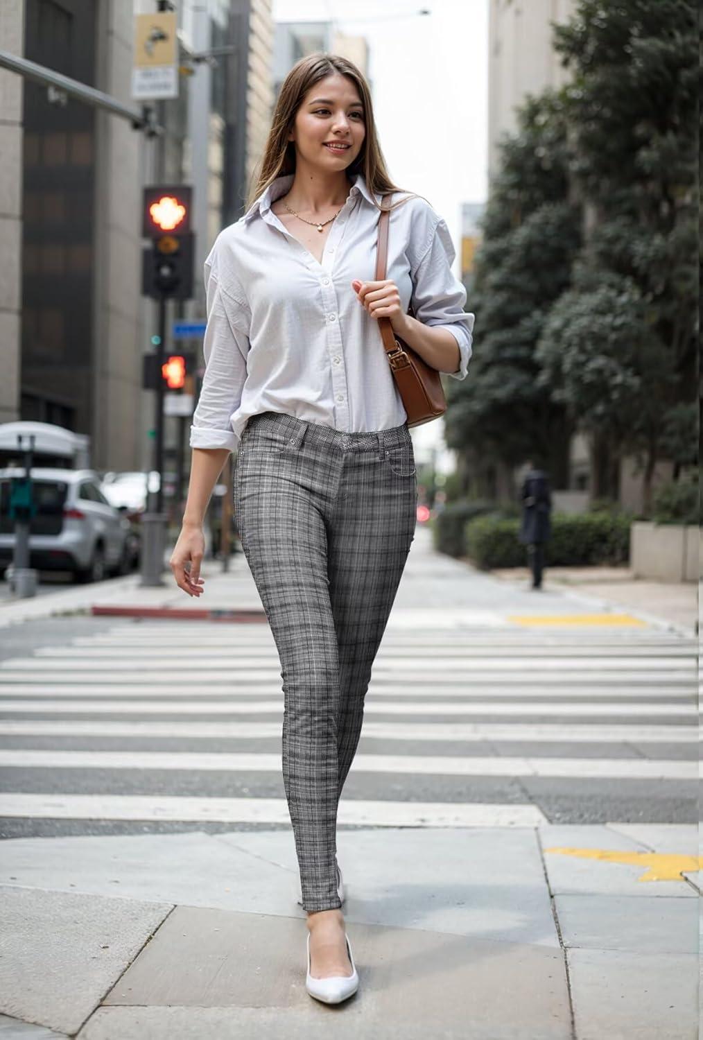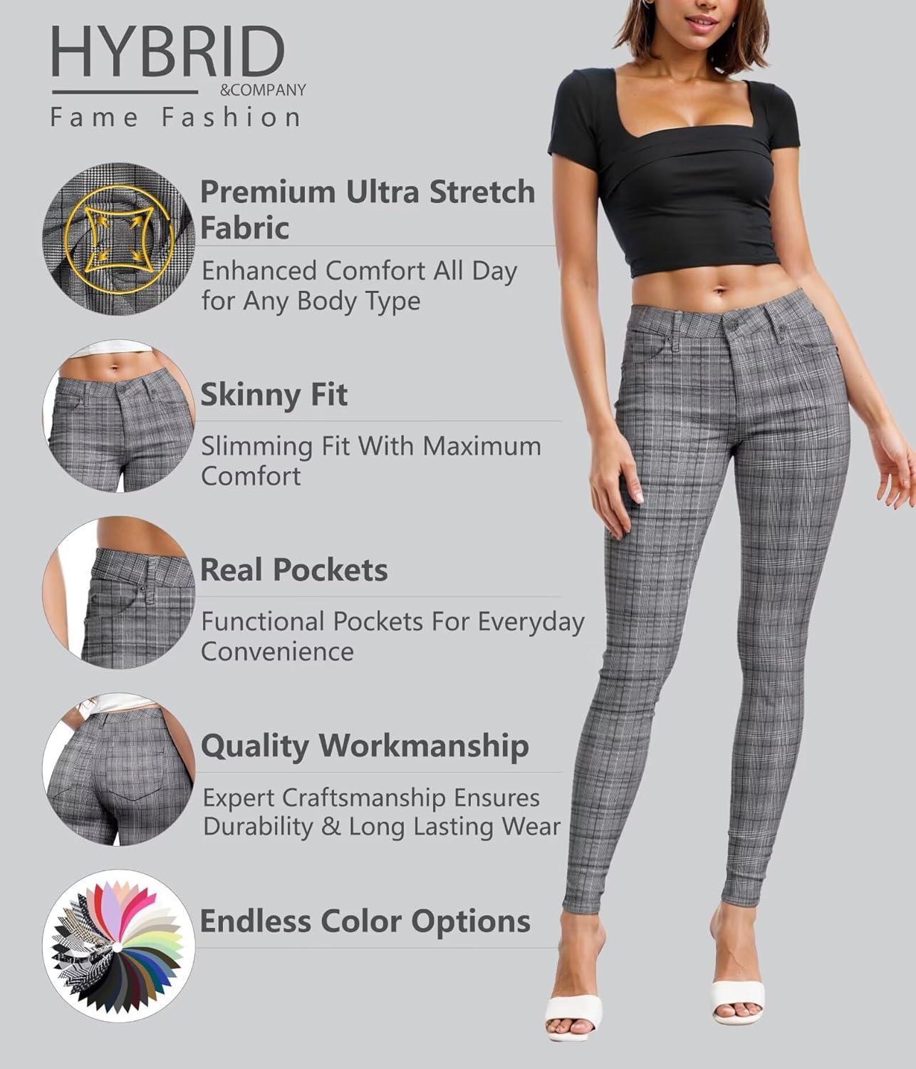 Hybrid & Company Womens Hyper Ultra Stretch Comfy Skinny Leg Work Casual Pants(Blackwhite-2042)