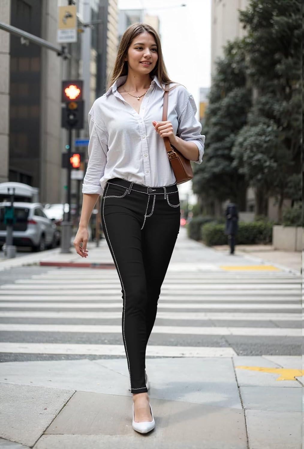 Hybrid & Company Womens Hyper Ultra Stretch Comfy Skinny Leg Work Casual Pants(Blackwhite-679)