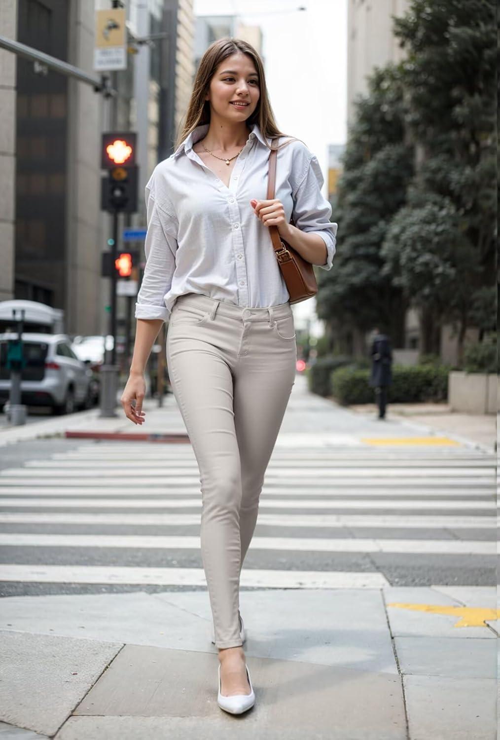 Hybrid & Company Womens Hyper Ultra Stretch Comfy Skinny Leg Work Casual Pants(Off-white)
