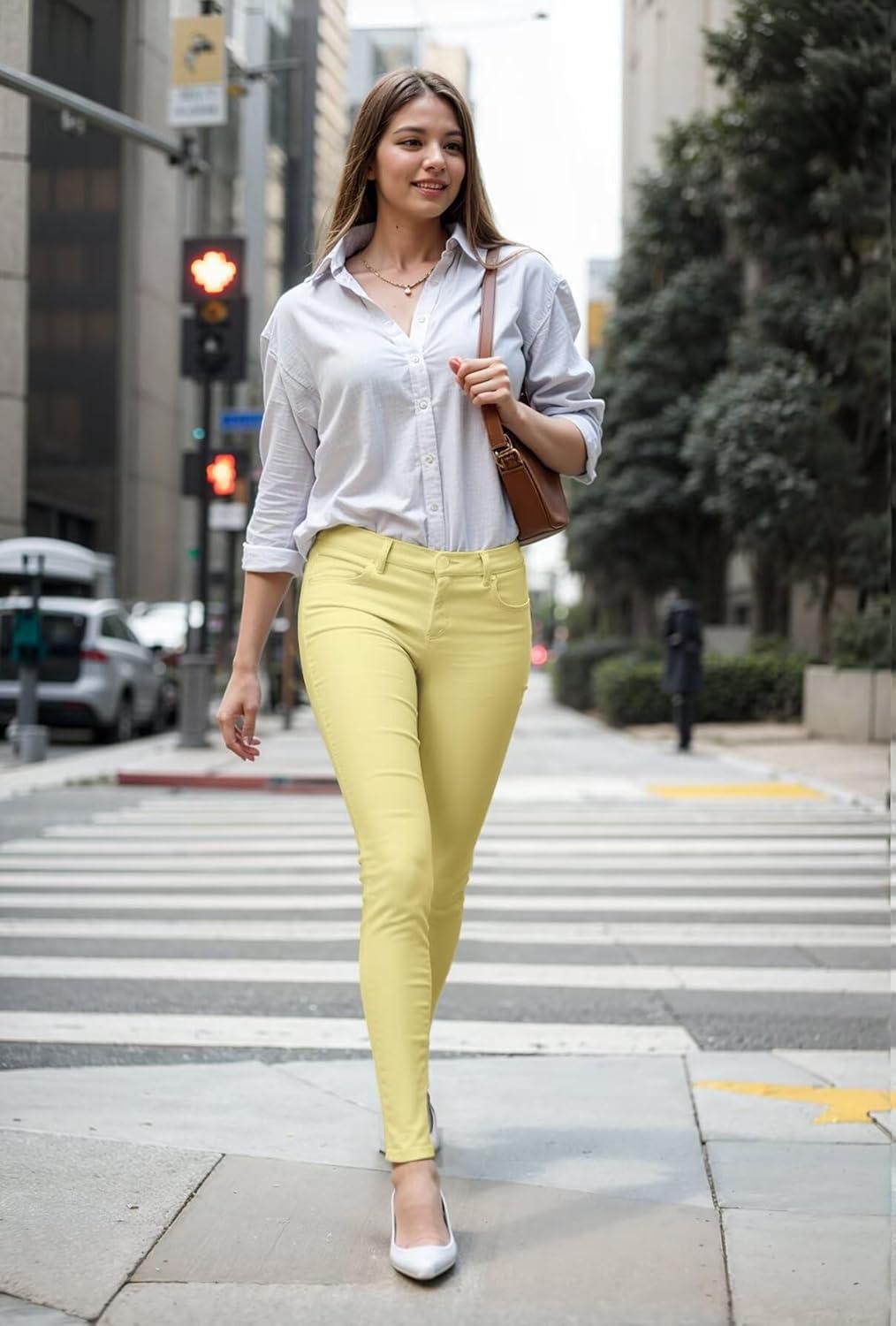 Hybrid & Company Womens Hyper Ultra Stretch Comfy Skinny Leg Work Casual Pants(Pastelyellow)