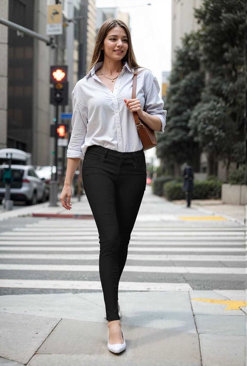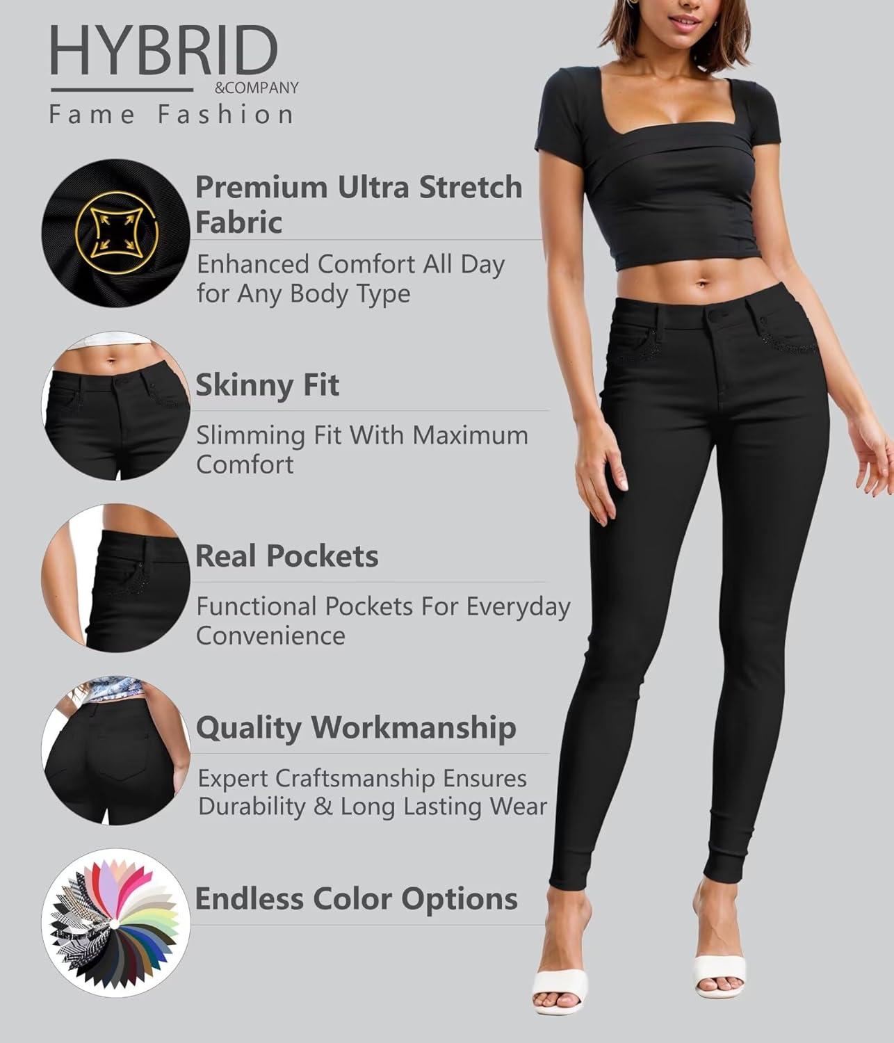 Hybrid & Company Womens Hyper Ultra Stretch Comfy Skinny Leg Work Casual Pants(Rhinestones-black)