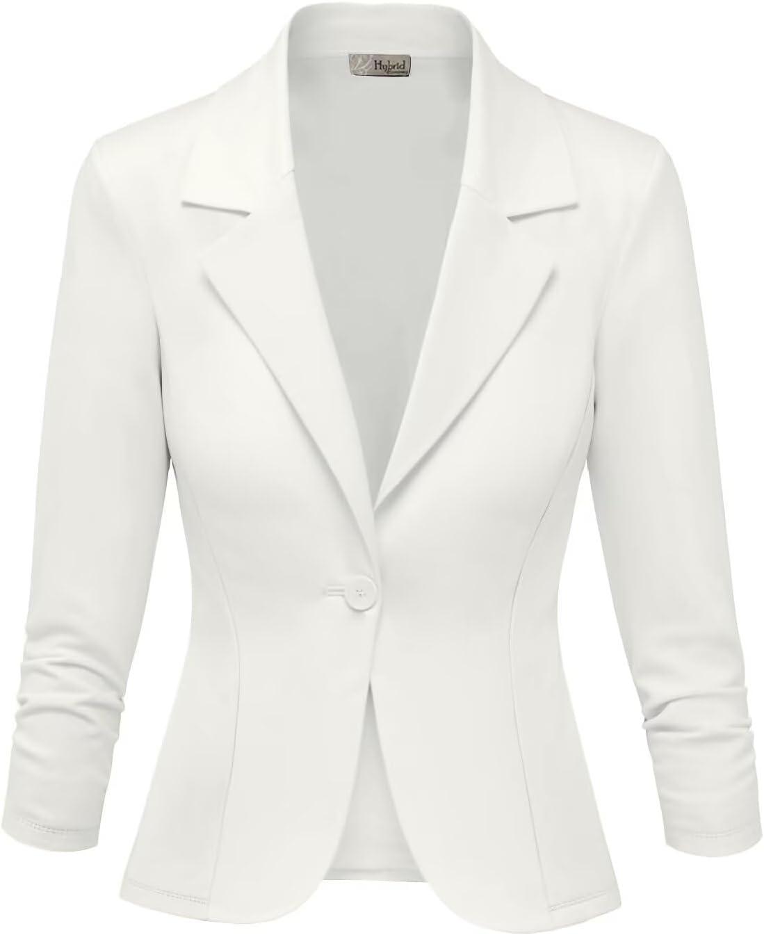 Hybrid & Company Women’s Lightweight Casual Work Office Stretch Ponte Cardigan Blazer Jacket Made in USA(Ivory)