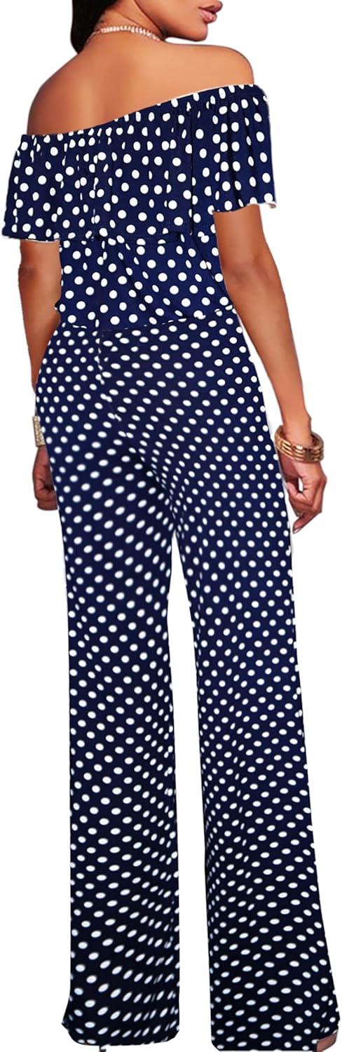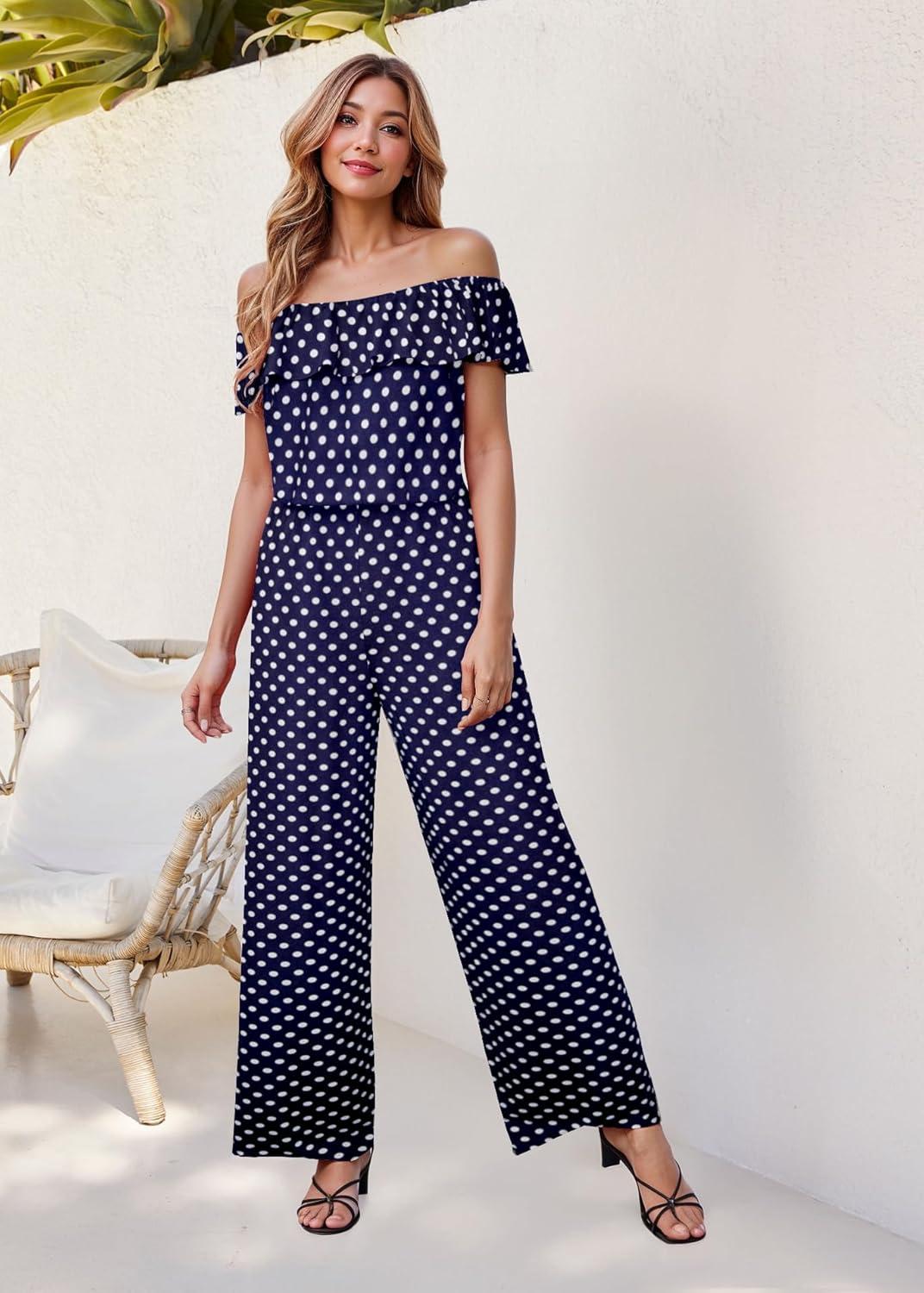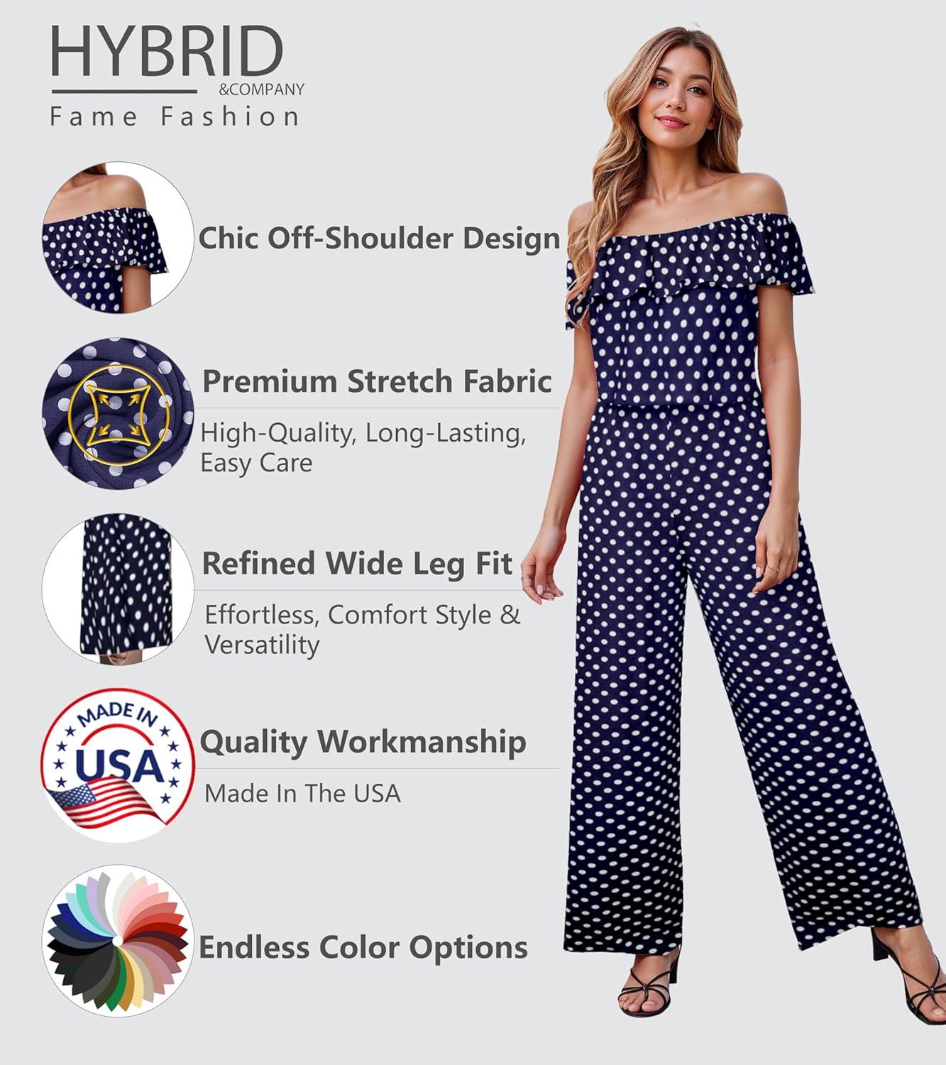 Hybrid & Company Women’s Lightweight Off Shoulder Jumpsuit – Stretchy Wide Leg Romper – Casual to Formal One Piece Outfit(10119-navyivory)
