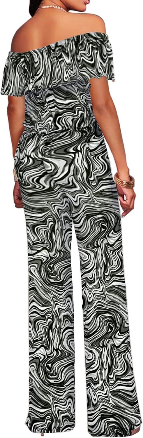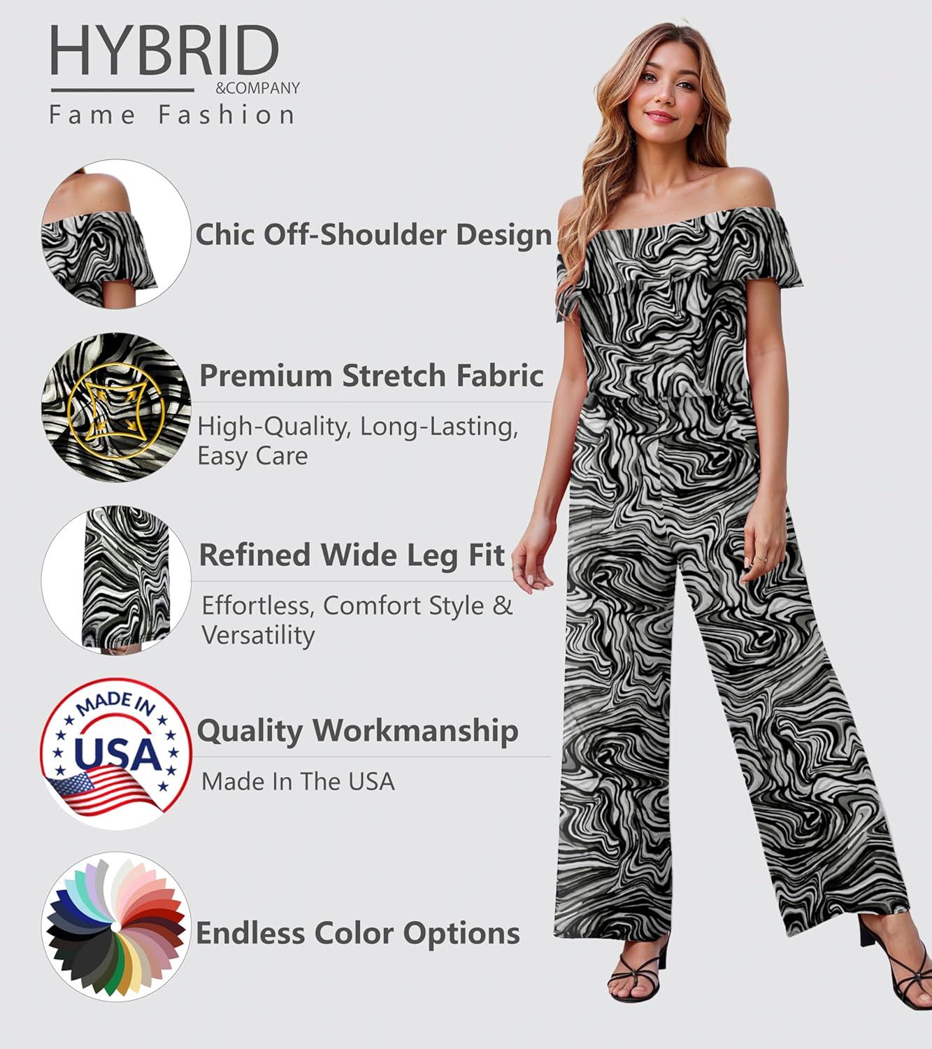 Hybrid & Company Women’s Lightweight Off Shoulder Jumpsuit – Stretchy Wide Leg Romper – Casual to Formal One Piece Outfit(11386-black/Grey)