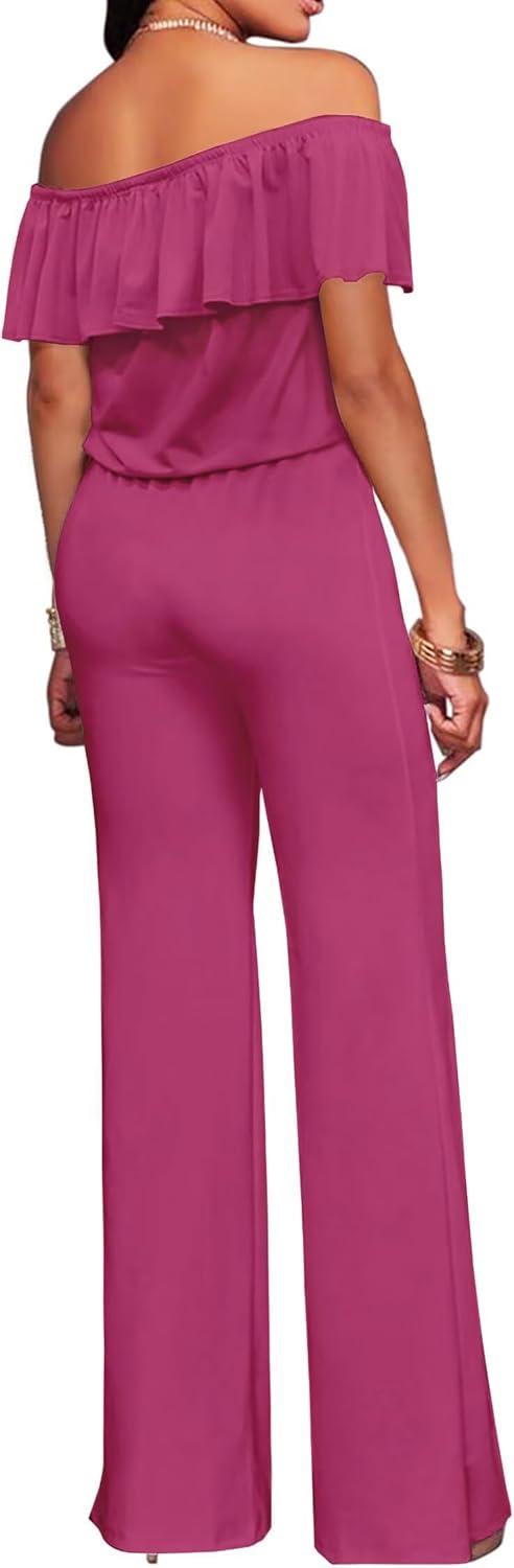 imageHybrid ampamp Company Womens Lightweight Off Shoulder Jumpsuit  Stretchy Wide Leg Romper  Casual to Formal One Piece OutfitHotpink