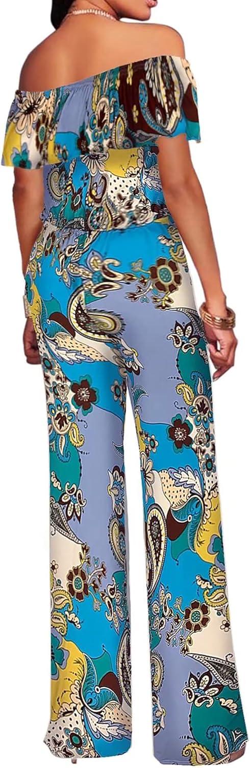 Hybrid & Company Women’s Lightweight Off Shoulder Jumpsuit – Stretchy Wide Leg Romper – Casual to Formal One Piece Outfit(I219950-brownmulti)
