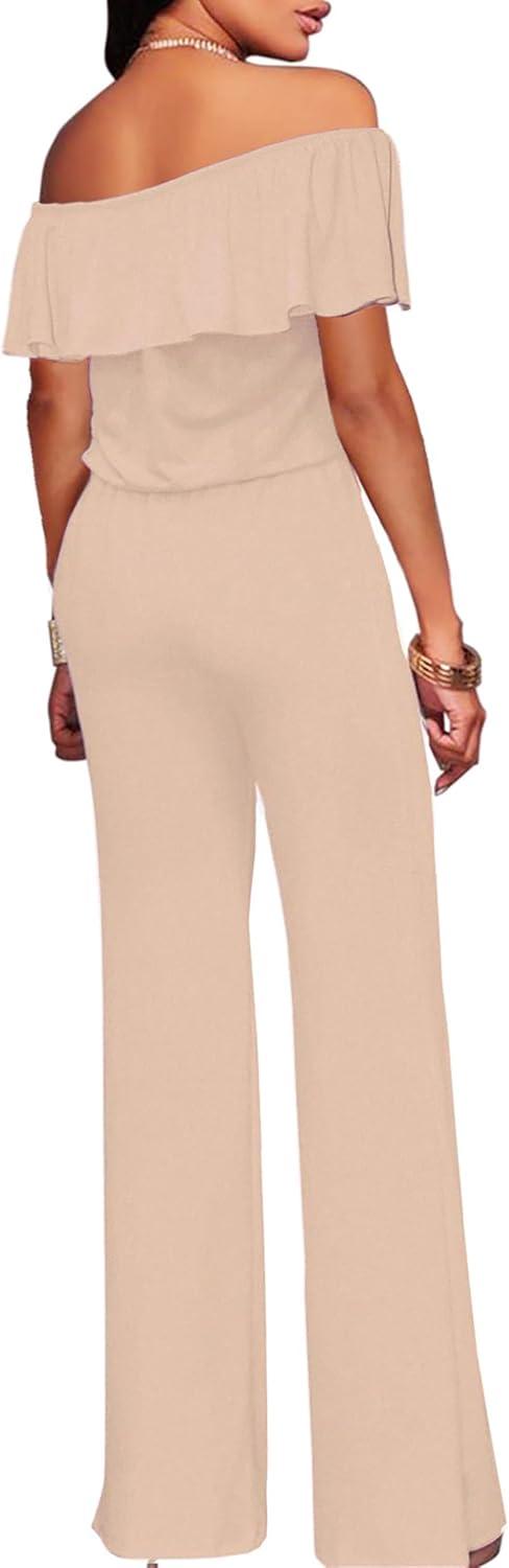 imageHybrid ampamp Company Womens Lightweight Off Shoulder Jumpsuit  Stretchy Wide Leg Romper  Casual to Formal One Piece OutfitPeach