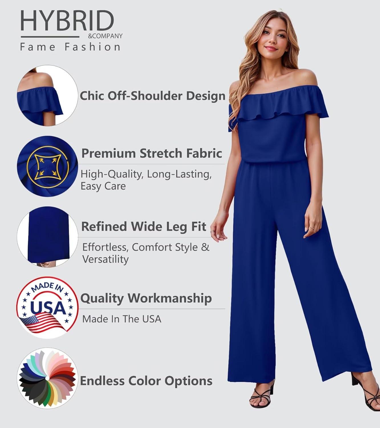 imageHybrid ampamp Company Womens Lightweight Off Shoulder Jumpsuit  Stretchy Wide Leg Romper  Casual to Formal One Piece OutfitRoyal