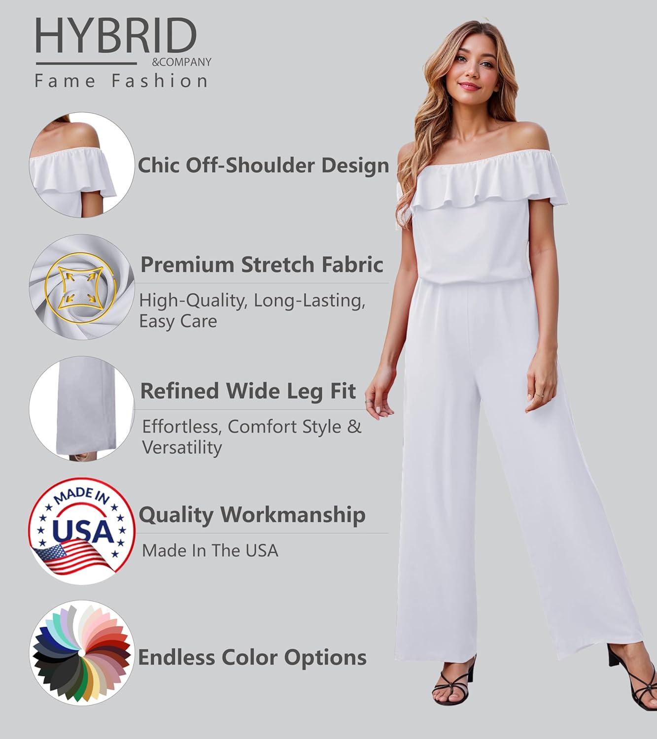 Be the first to review “Hybrid & Company Women’s Lightweight Off Shoulder Jumpsuit – Stretchy Wide Leg Romper – Casual to Formal One Piece Outfit(White)”