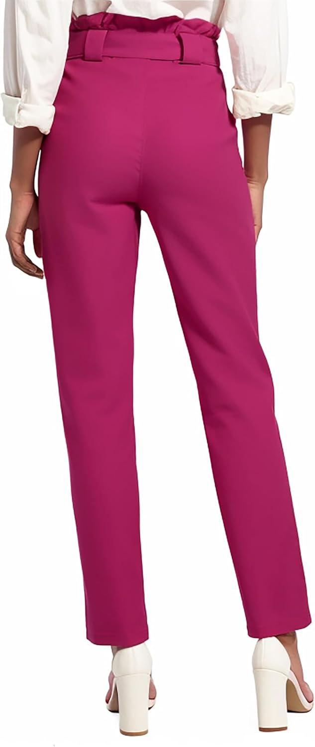 Hybrid & Company Women's Paper Bag Pants Casual Slim High Waist Pants with Bow Knot(Tp48366-cds-pink)