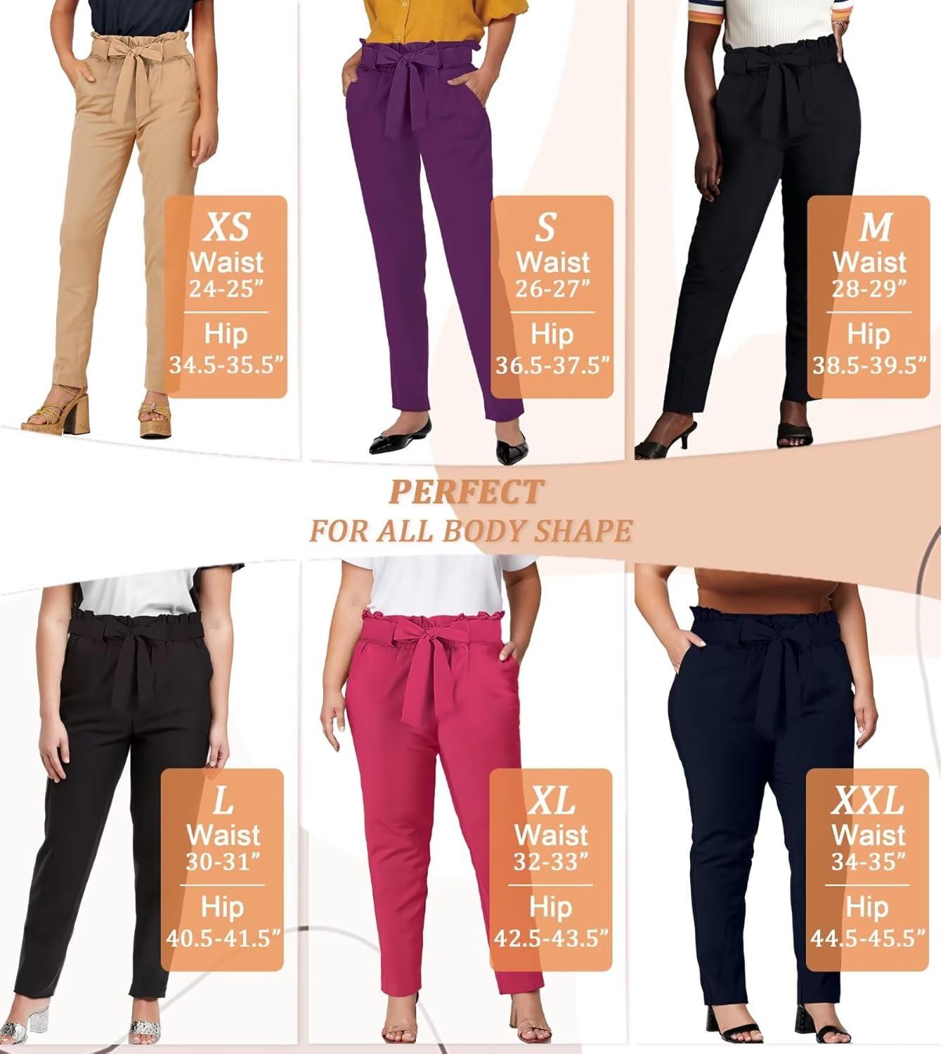 Hybrid & Company Women’s Paper Bag Pants Casual Slim High Waist Pants with Bow Knot(Tp48366-cds-black)