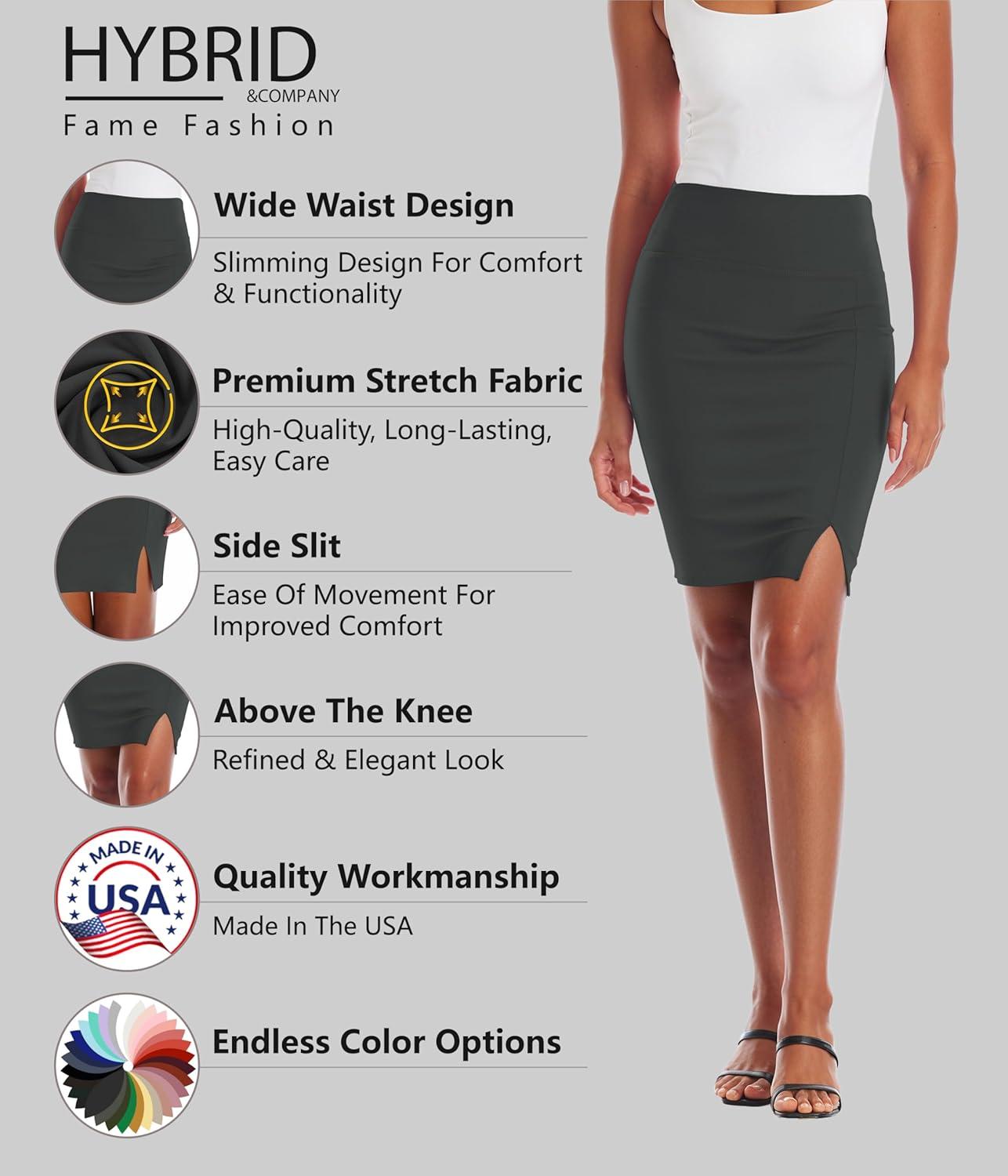 Hybrid & Company Women's Pencil Skirt Premium Ponte Basic Solid Stretch Above Knee Side Slit(Ksk45012-1073t-gunmetal)