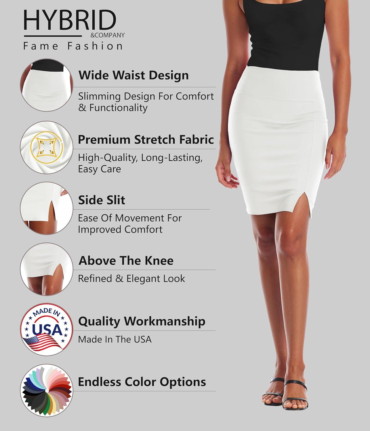 Hybrid & Company Women’s Pencil Skirt Premium Ponte Basic Solid Stretch Above Knee Side Slit(Ksk45012-1073t-ivory)