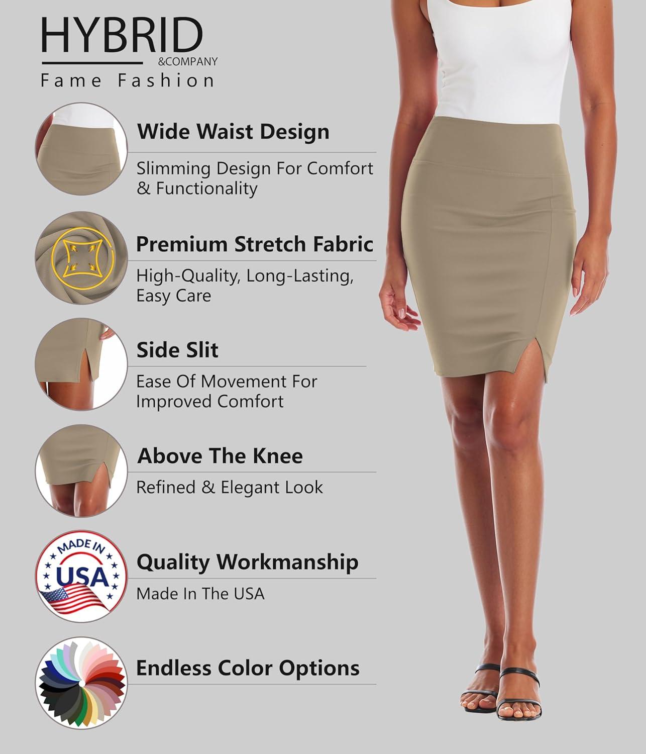 Hybrid & Company Women’s Pencil Skirt Premium Ponte Basic Solid Stretch Above Knee Side Slit(Ksk45012-1073t-khaki)