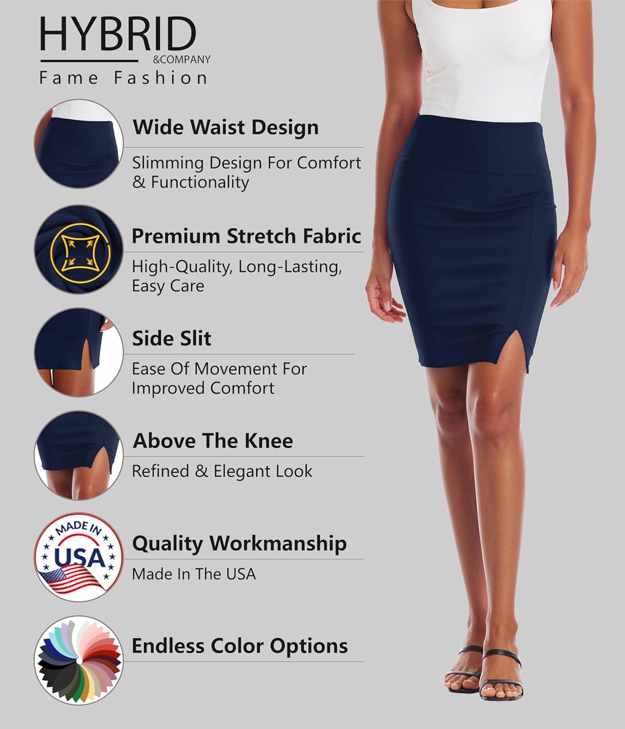 Hybrid & Company Women’s Pencil Skirt Premium Ponte Basic Solid Stretch Above Knee Side Slit(Ksk45012-1073t-navy)