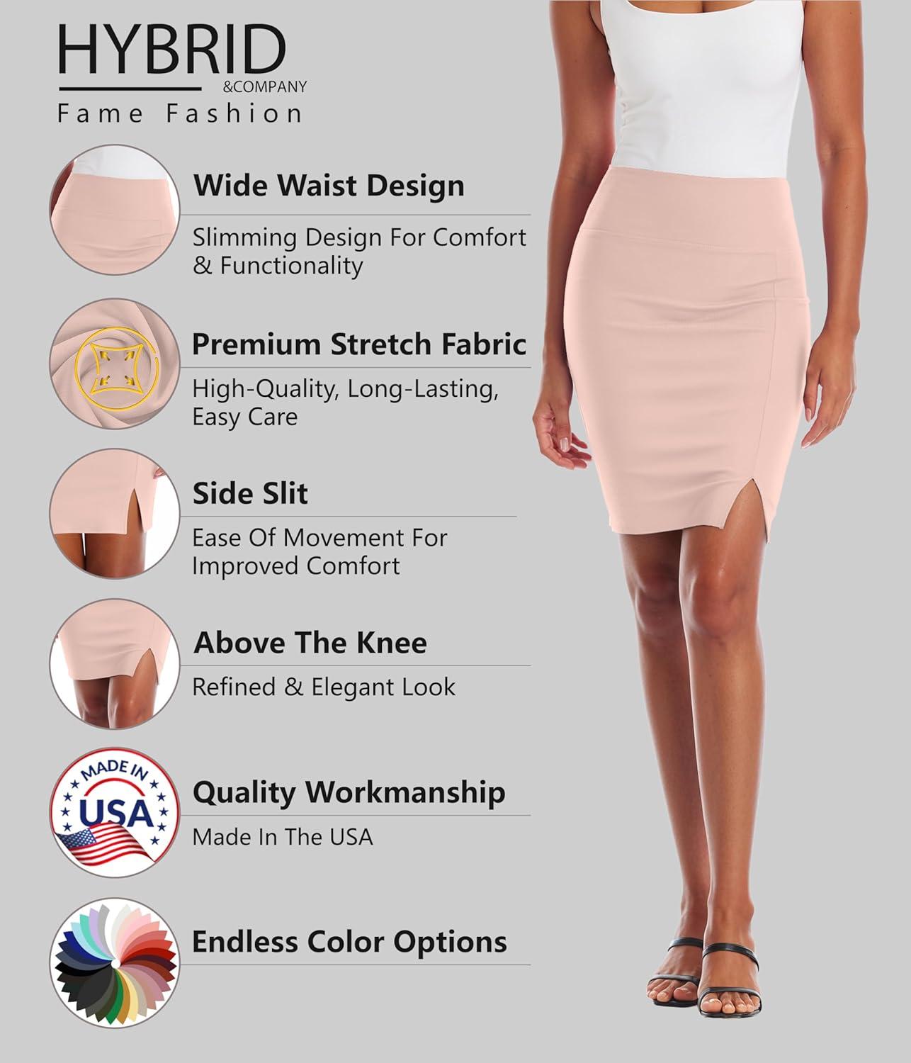 Hybrid & Company Women’s Pencil Skirt Premium Ponte Basic Solid Stretch Above Knee Side Slit(Ksk45012-1073t-rose)