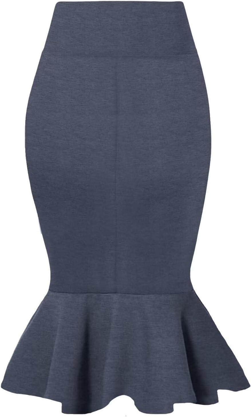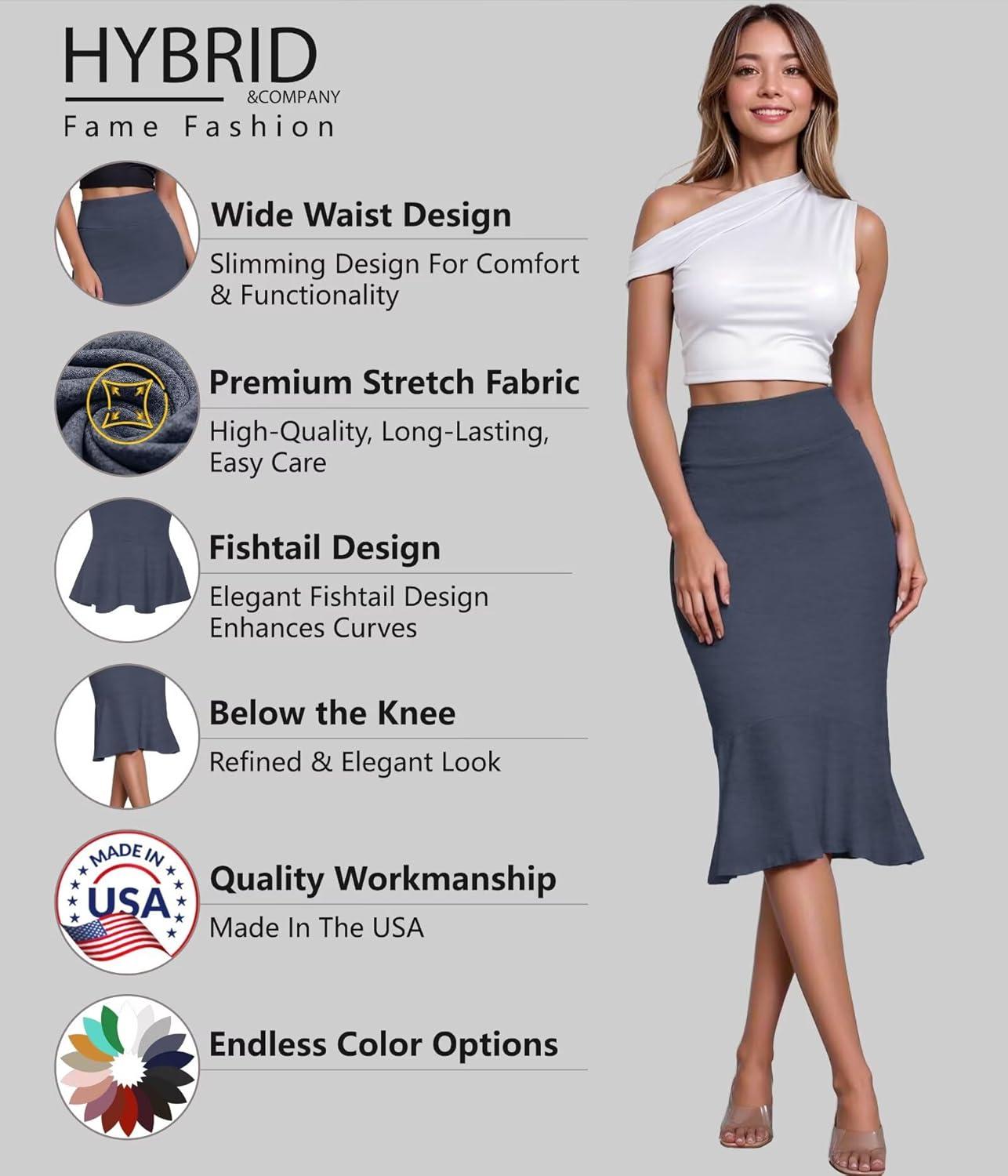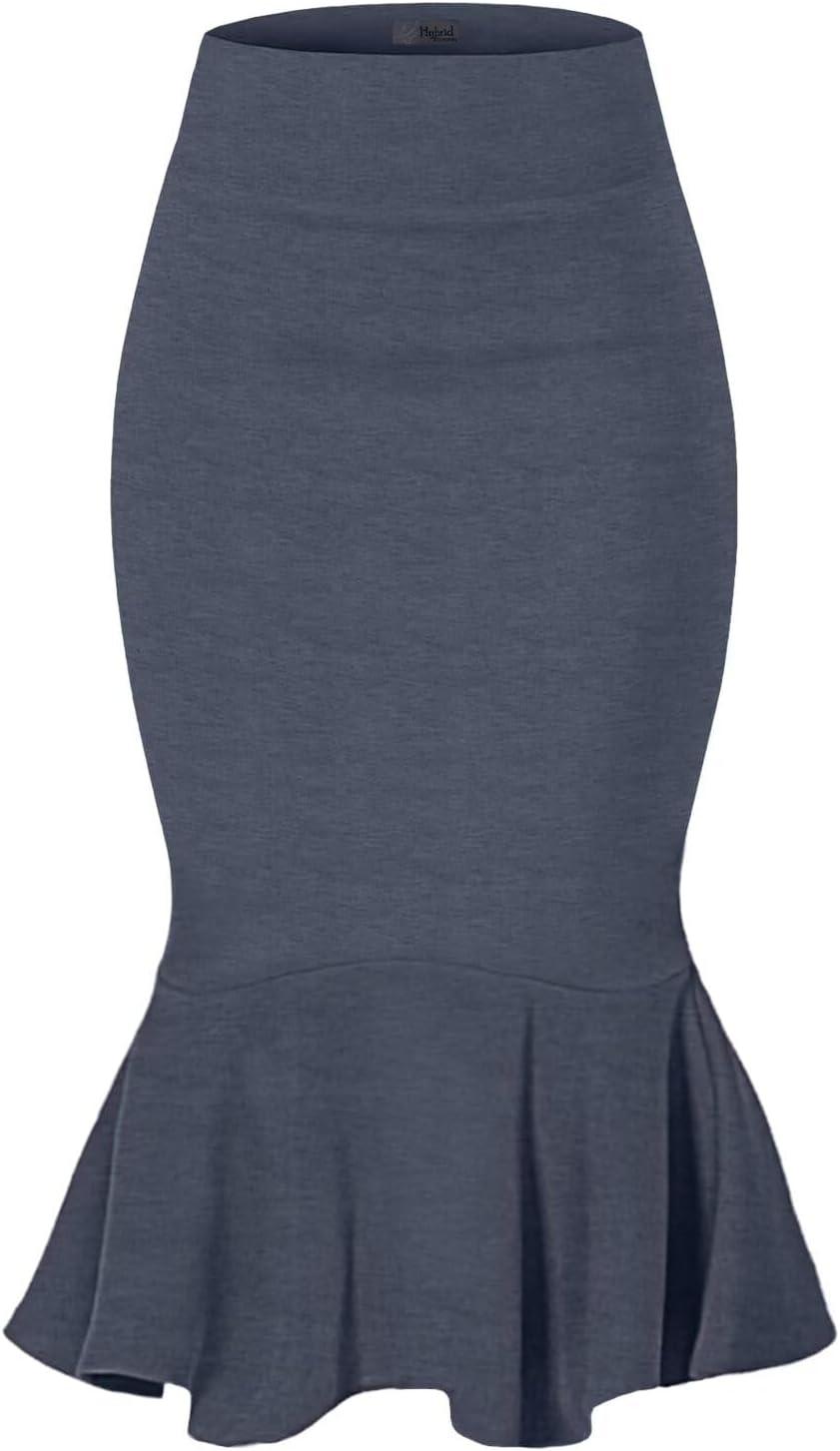 HyBrid & Company Womens Premium Nylon Ponte Stretch Office Fishtail Pencil Skirt High Waist Made in The USA Below Knee(Heathernavy-ksk45010-1073t)