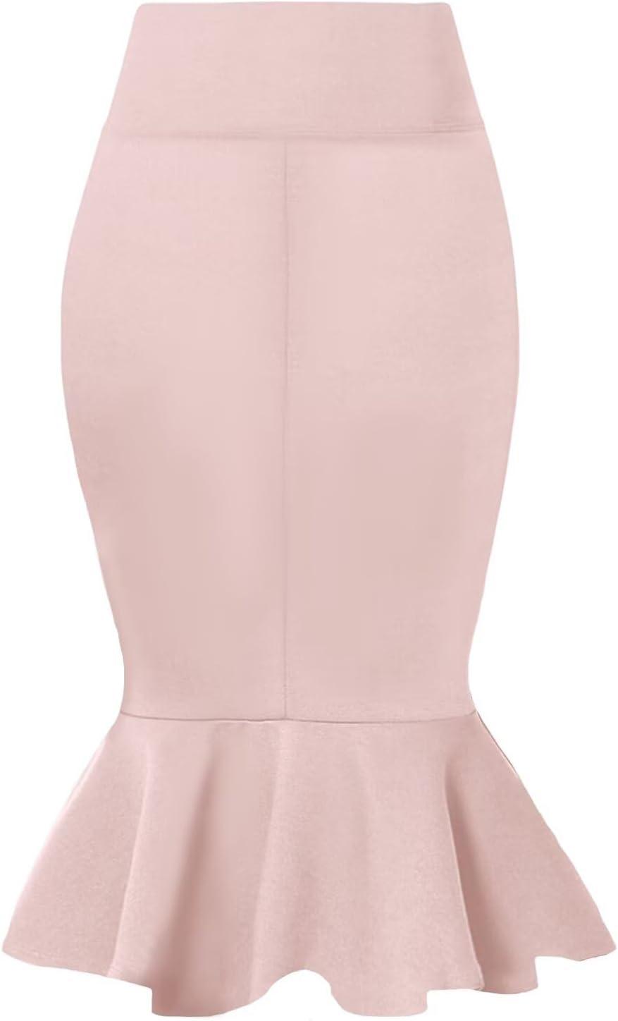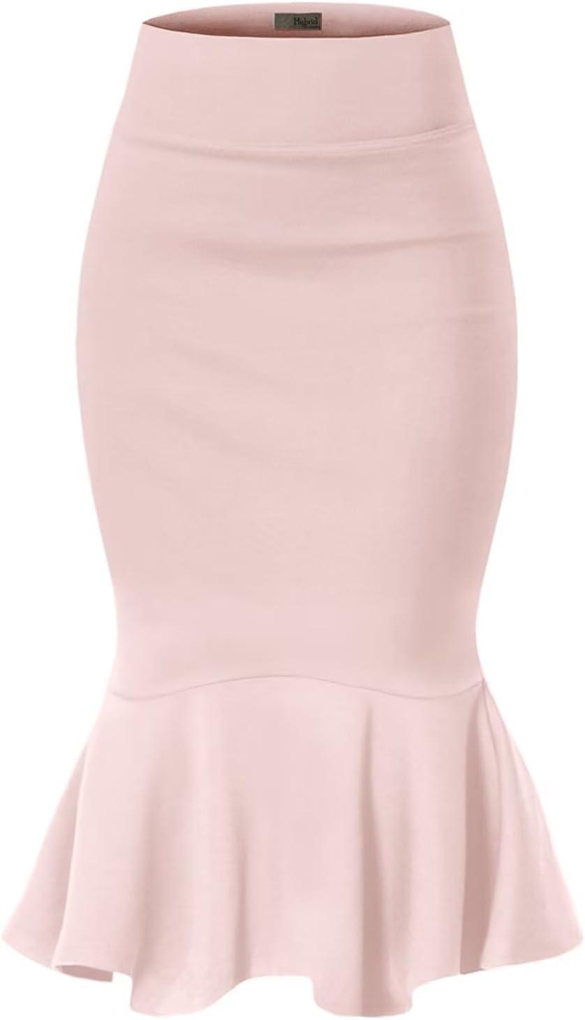 HyBrid & Company Womens Premium Nylon Ponte Stretch Office Fishtail Pencil Skirt High Waist Made in The USA Below Knee(Peach-ksk45010-1073t)