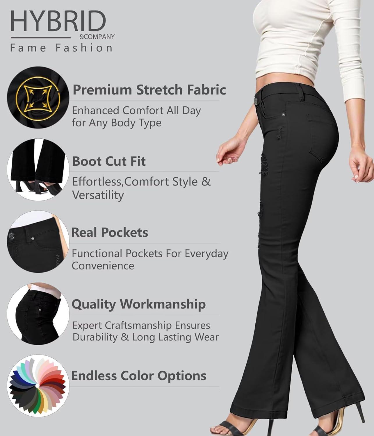 Hybrid & Company Women’s Slim Boot Cut Stretch Pants(Bl-black)