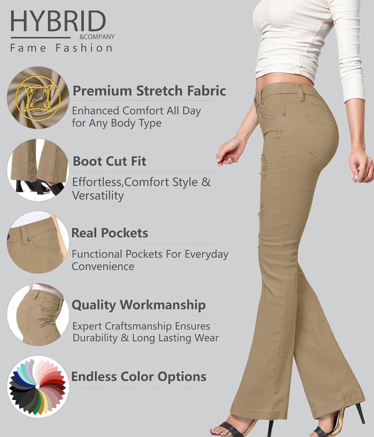 Hybrid & Company Women’s Slim Boot Cut Stretch Pants(Bl-khaki)