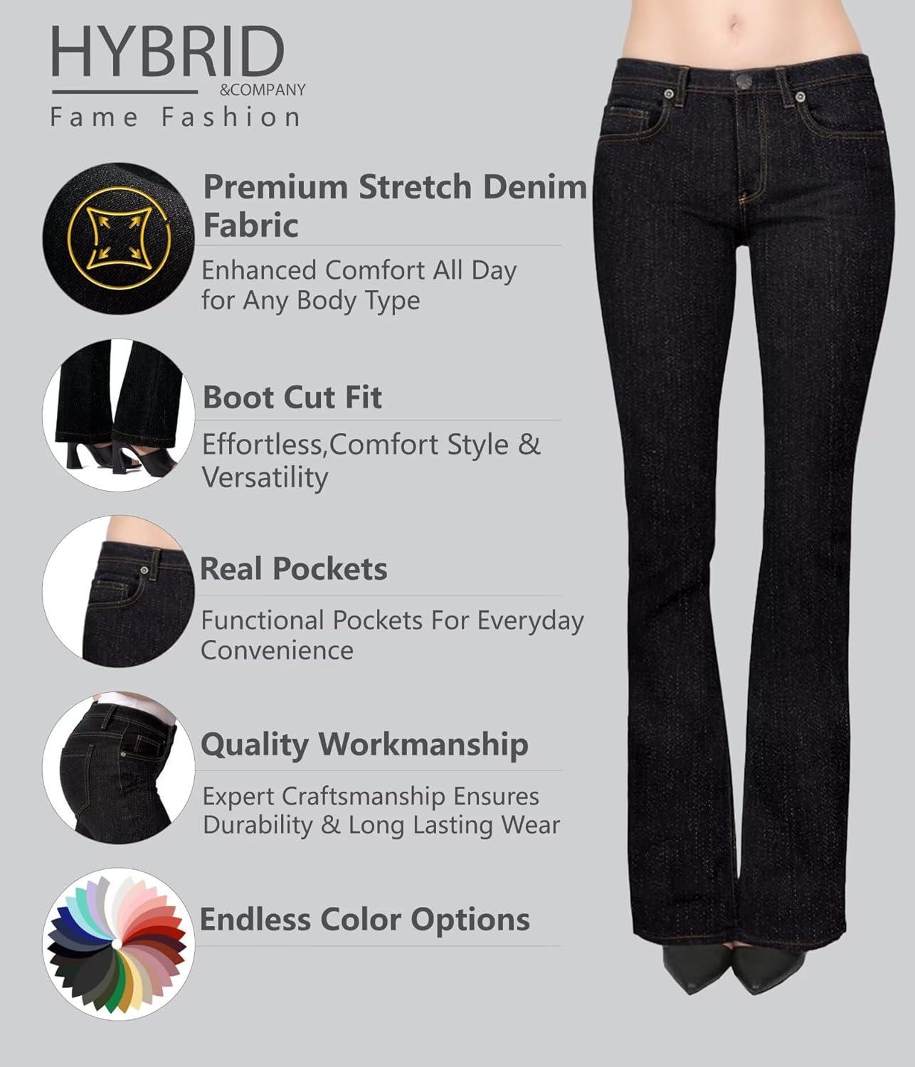 Hybrid & Company Women’s Slim Boot Cut Stretch Pants(Jegging-dark Wash)