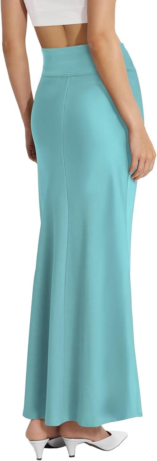 Hybrid & Company Women’s Stretch Lightweight Flowy Maxi Skirt – Casual Fold Over Waist, Made in USA(Ksksd9500-1017-aqua)