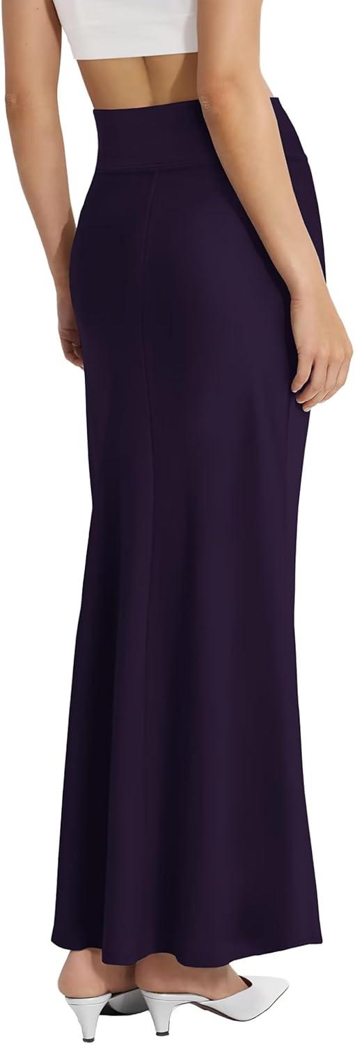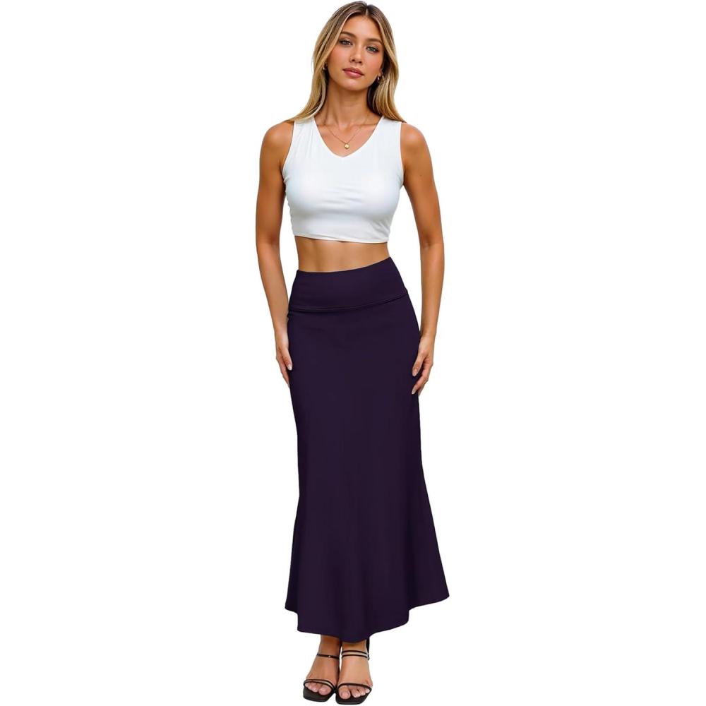Hybrid & Company Women’s Stretch Lightweight Flowy Maxi Skirt – Casual Fold Over Waist, Made in USA(Ksksd9500-1017-eggplant)