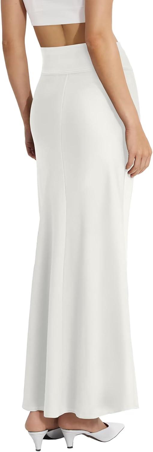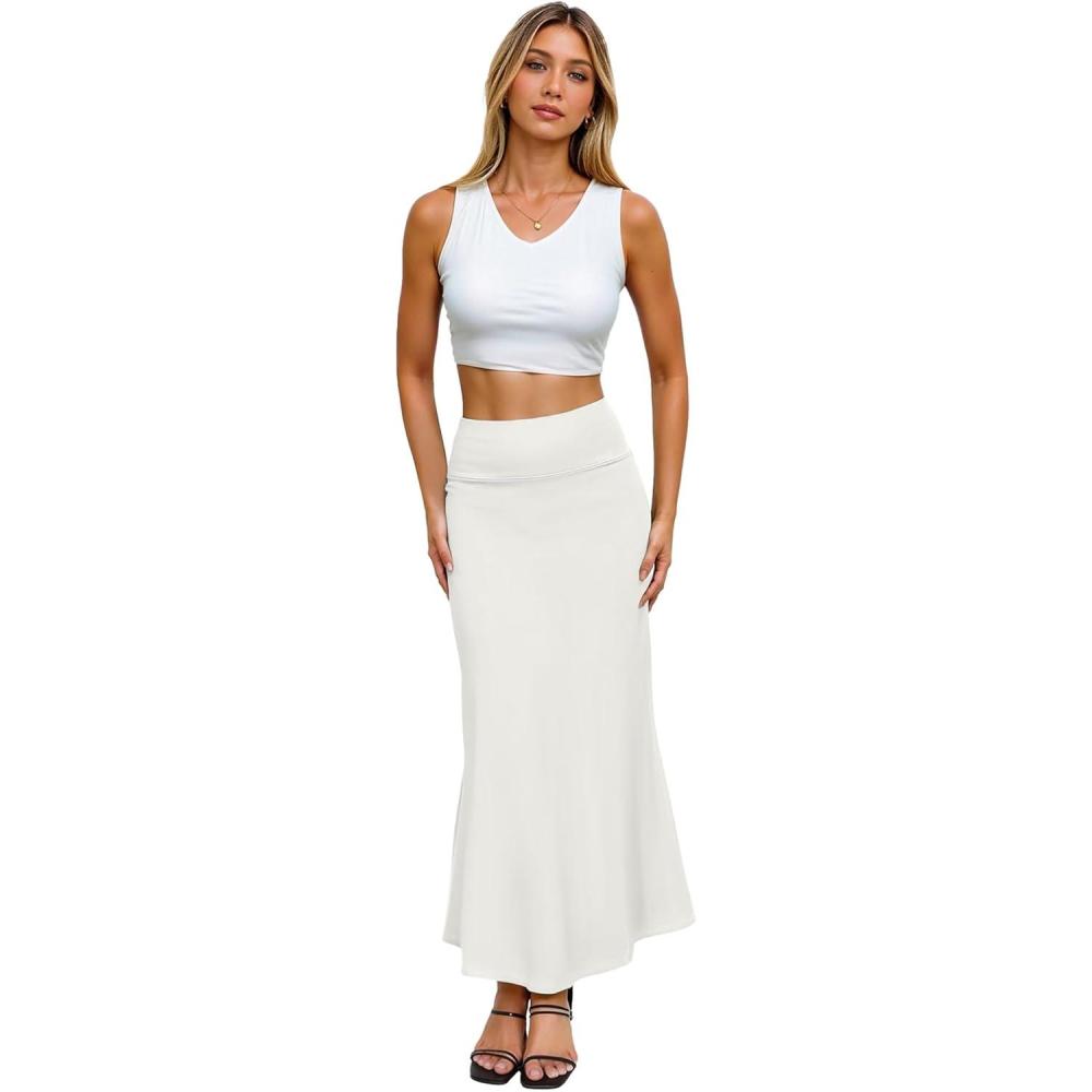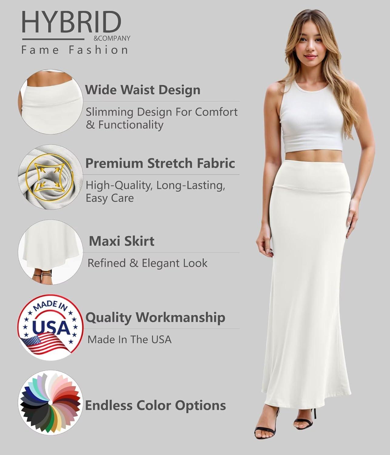 Hybrid & Company Women’s Stretch Lightweight Flowy Maxi Skirt – Casual Fold Over Waist, Made in USA(Ksksd9500-1017-ivory)