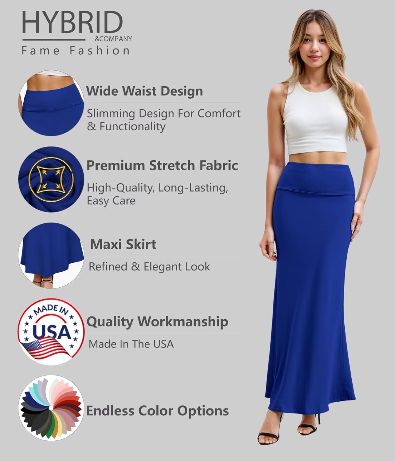 Hybrid & Company Women’s Stretch Lightweight Flowy Maxi Skirt – Casual Fold Over Waist, Made in USA(Ksksd9500-1017-royal)