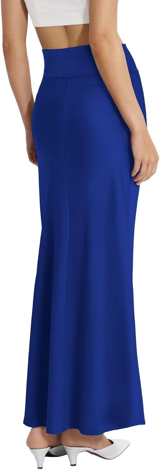 Hybrid & Company Women's Stretch Lightweight Flowy Maxi Skirt – Casual Fold Over Waist, Made in USA(Ksksd9500-1017-royal)