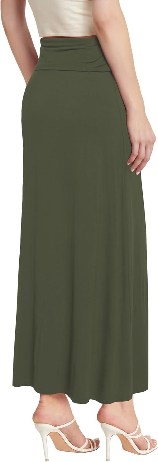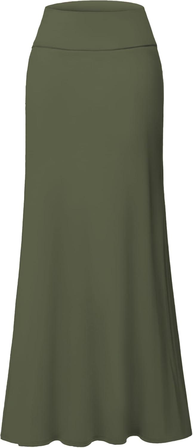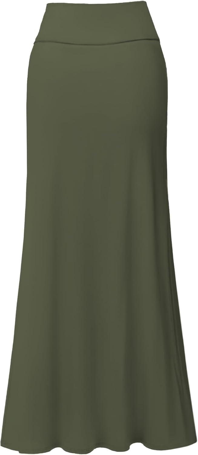 Hybrid & Company Women's Stretch Lightweight Flowy Maxi Skirt – Casual Fold Over Waist, Made in USA(Olive)