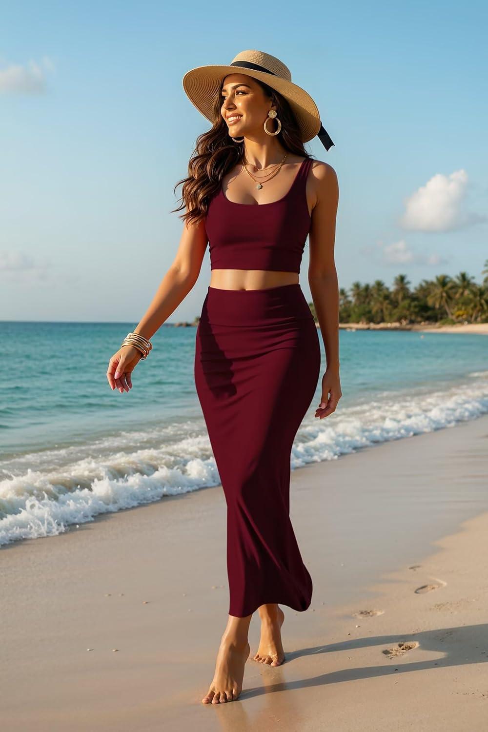 image:imageHybrid amp Company Womens Stretch Lightweight Flowy Maxi Skirt  Casual Fold Over Waist Made in USAWine