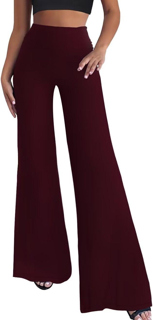 Hybrid & Company Womens Super Comfy Flowy Wide Leg Palazzo Pants Made in USA(Burgundy)