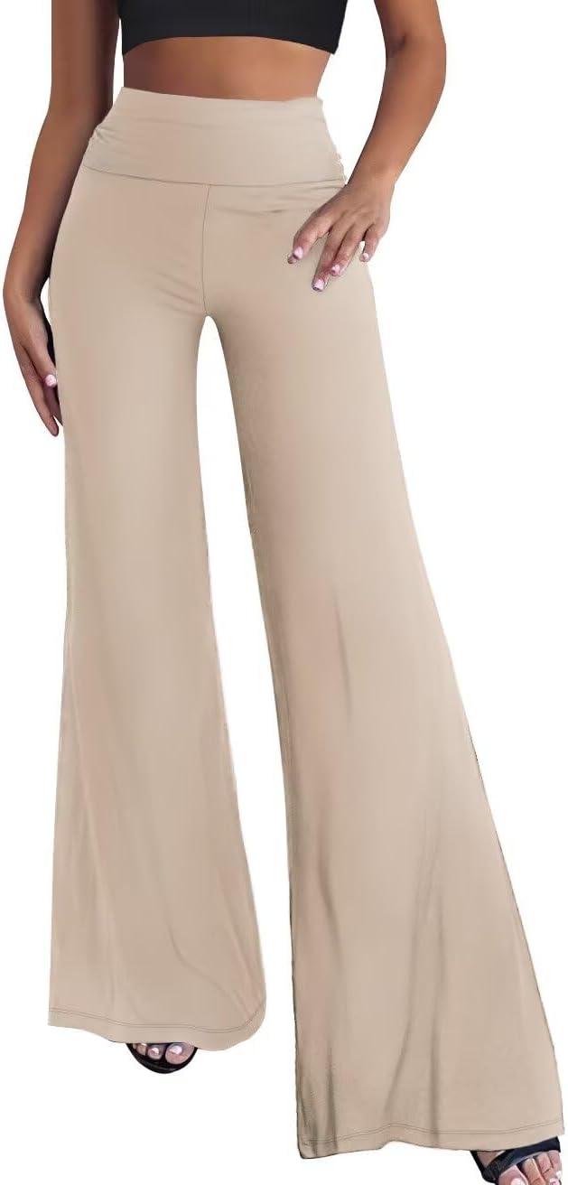 Hybrid & Company Womens Super Comfy Flowy Wide Leg Palazzo Pants Made in USA(Khaki)
