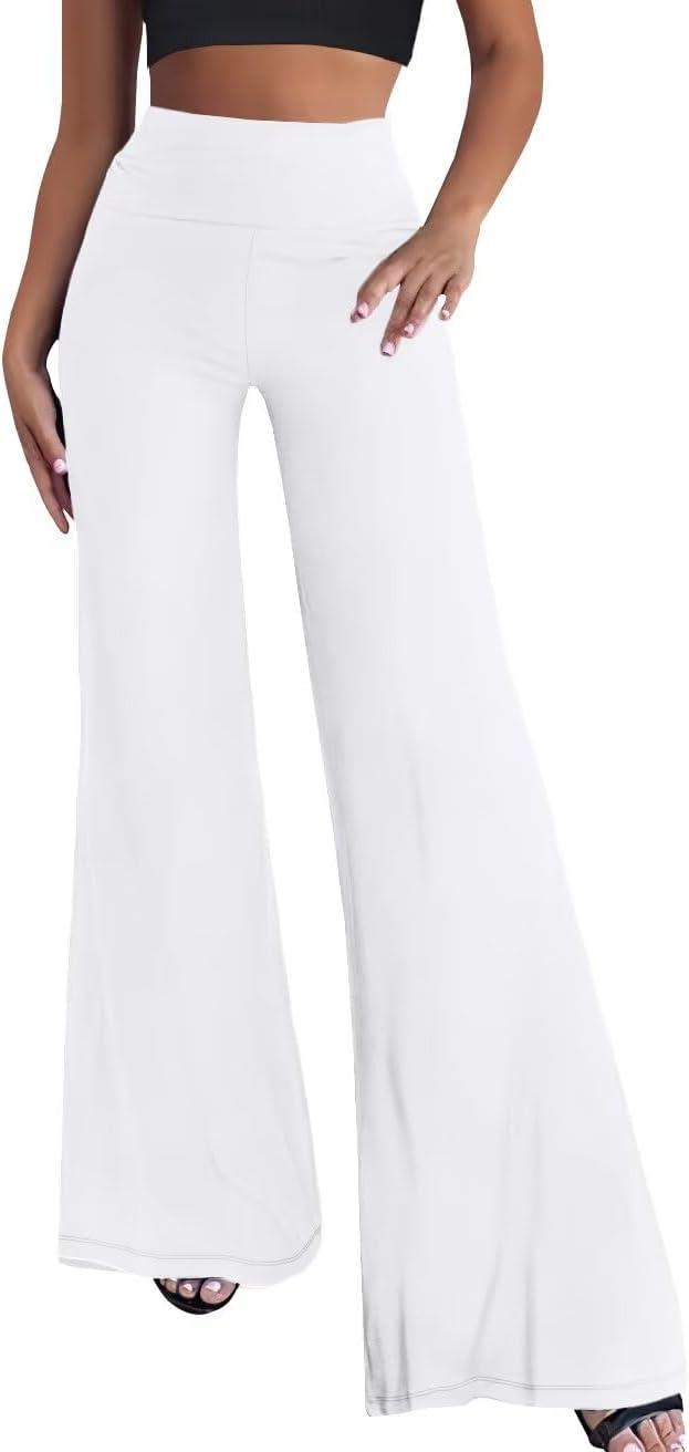 Hybrid & Company Womens Super Comfy Flowy Wide Leg Palazzo Pants Made in USA(White)