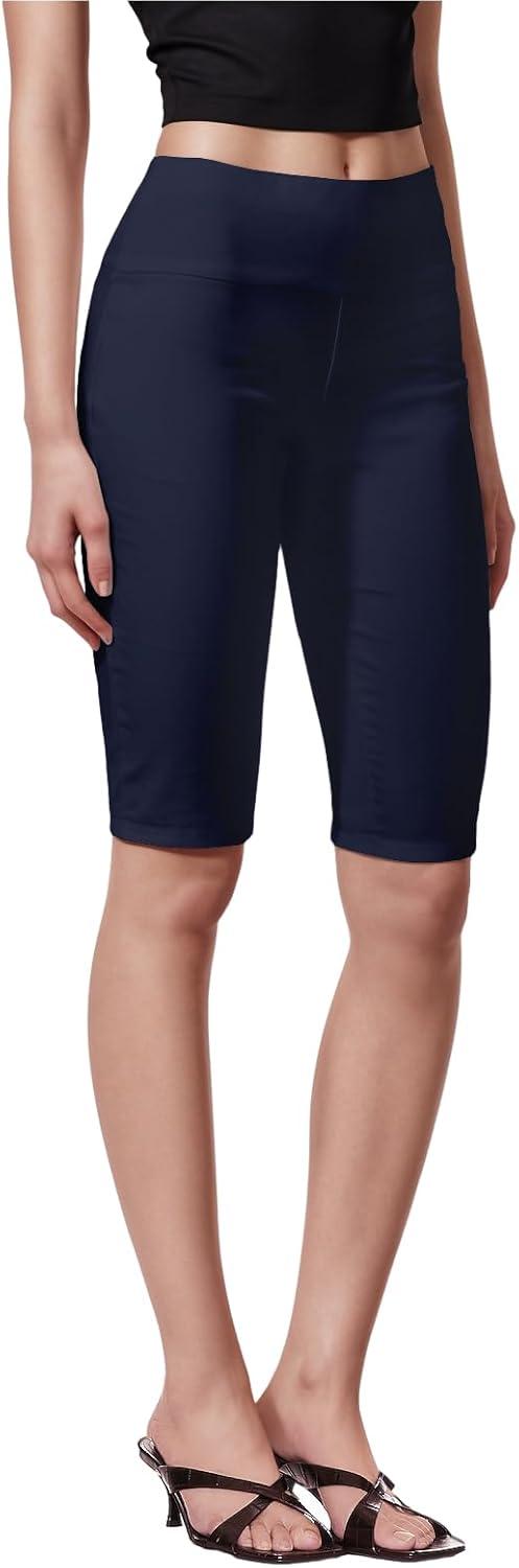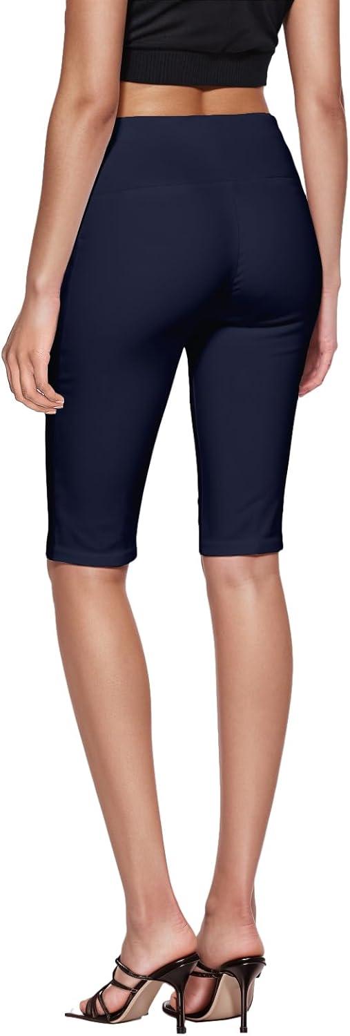 A pull-on, flat front,Bermuda with wide waistband to flatter the midsection. Made of soft solar millennium fabric for comfort and ease. It makes the work to happy hour transition seamless. Great for any occasion.