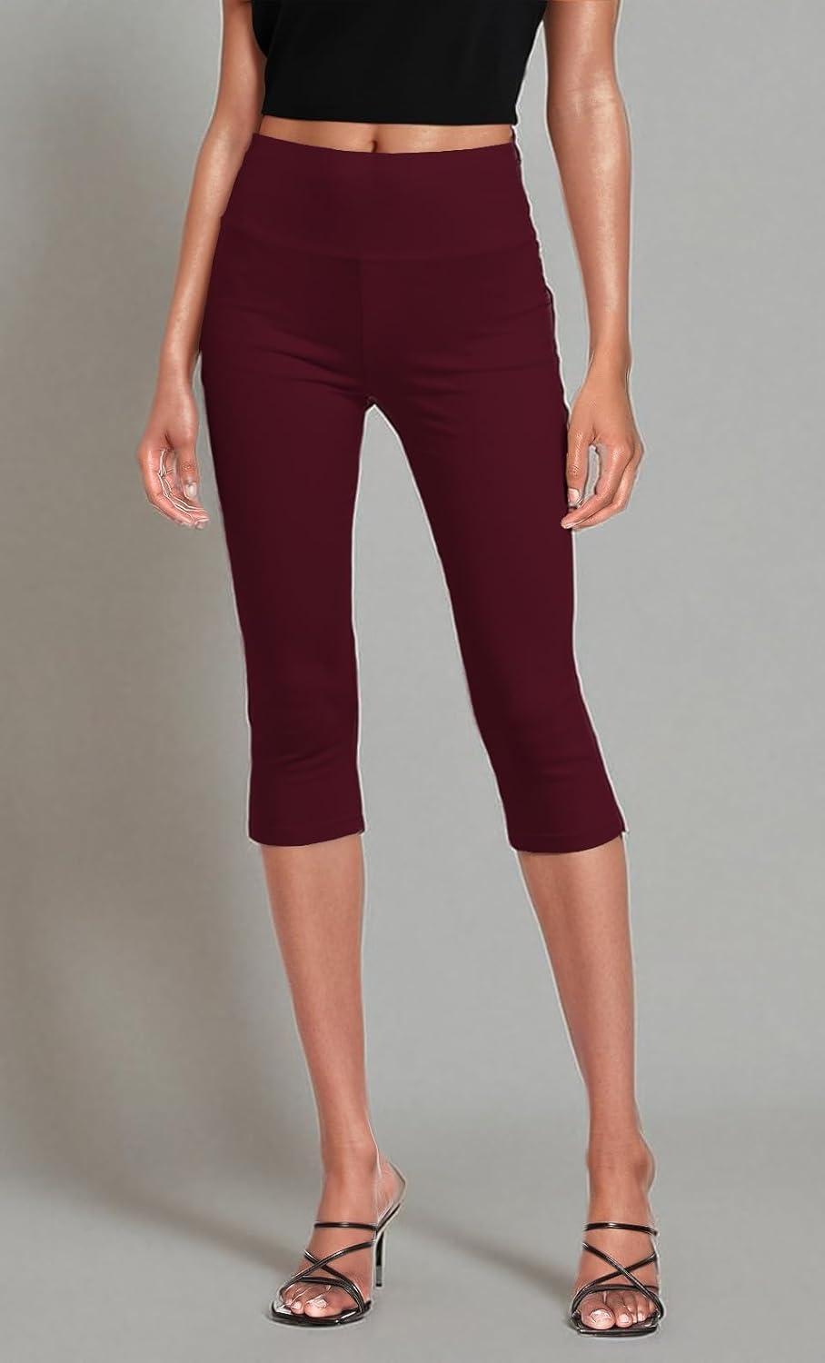 Hybrid & Company Womens Super Comfy Stretch Pull On Millennium Twill Capri Shorts(Capri-wine)